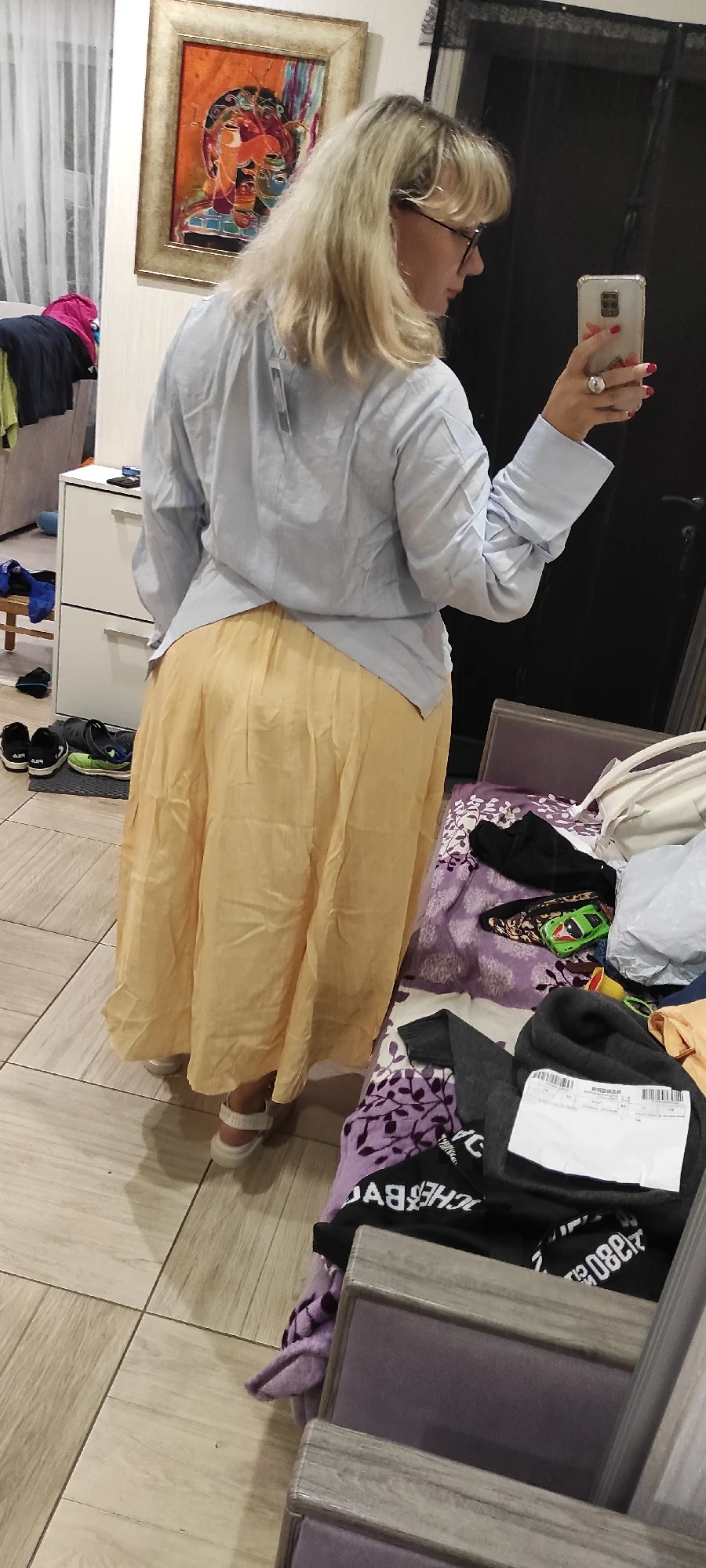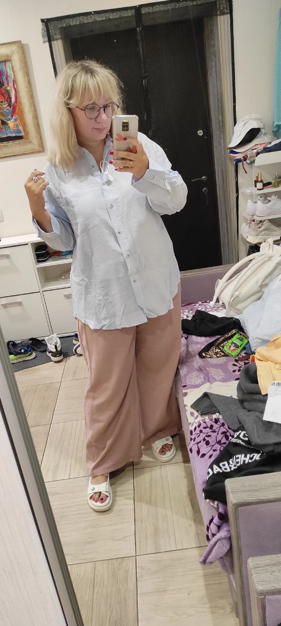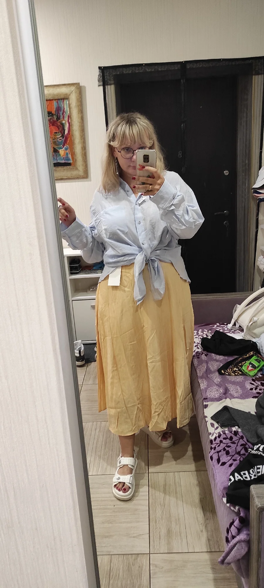 это чудо просто, как хороша рубашка. разрез сзади добавляет изюма. очень приятная ткань, как с холодком. и она очень большая, это кайф. на 110/92/122, рост 167 размер 3хл