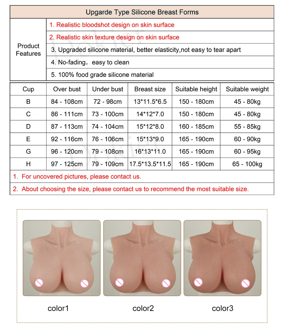 Dokier Realistic Silicone Crossdresser Breast Forms Breastplate Fake Boobs Tits B C D E G H Cup