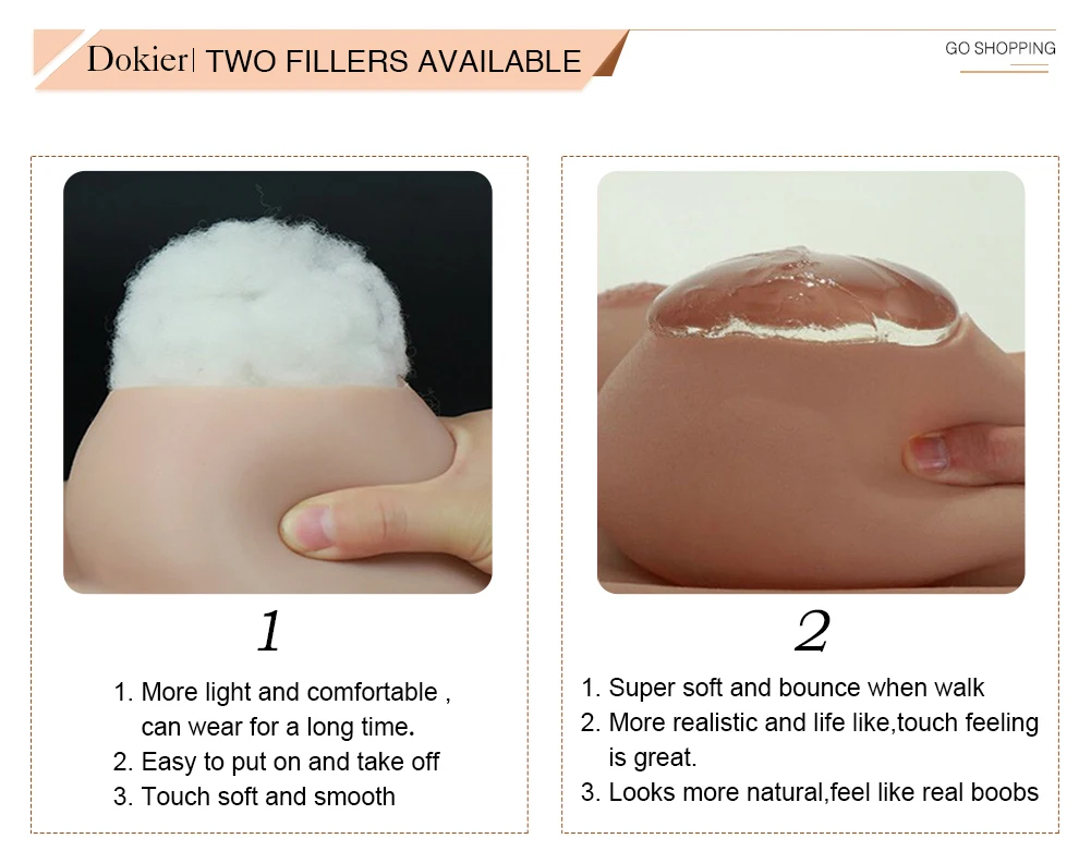 Cotton filled boobs is light weight ,soft and bouncy .can be worn for long time with feel no tired