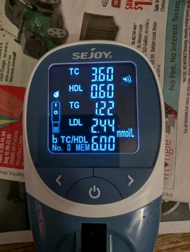Отличный прибор. И по принципу, и по удобству. Ещё бы и расходники (капиллярные трубки) продавались бы отдельно. Тогда ему цены не было бы. Показания - в пределах разумной погрешности. Прибор показал общий холестерин 3.36, а анализ, сданный 5-тью днями ранее в поликлинике показал 3.0.