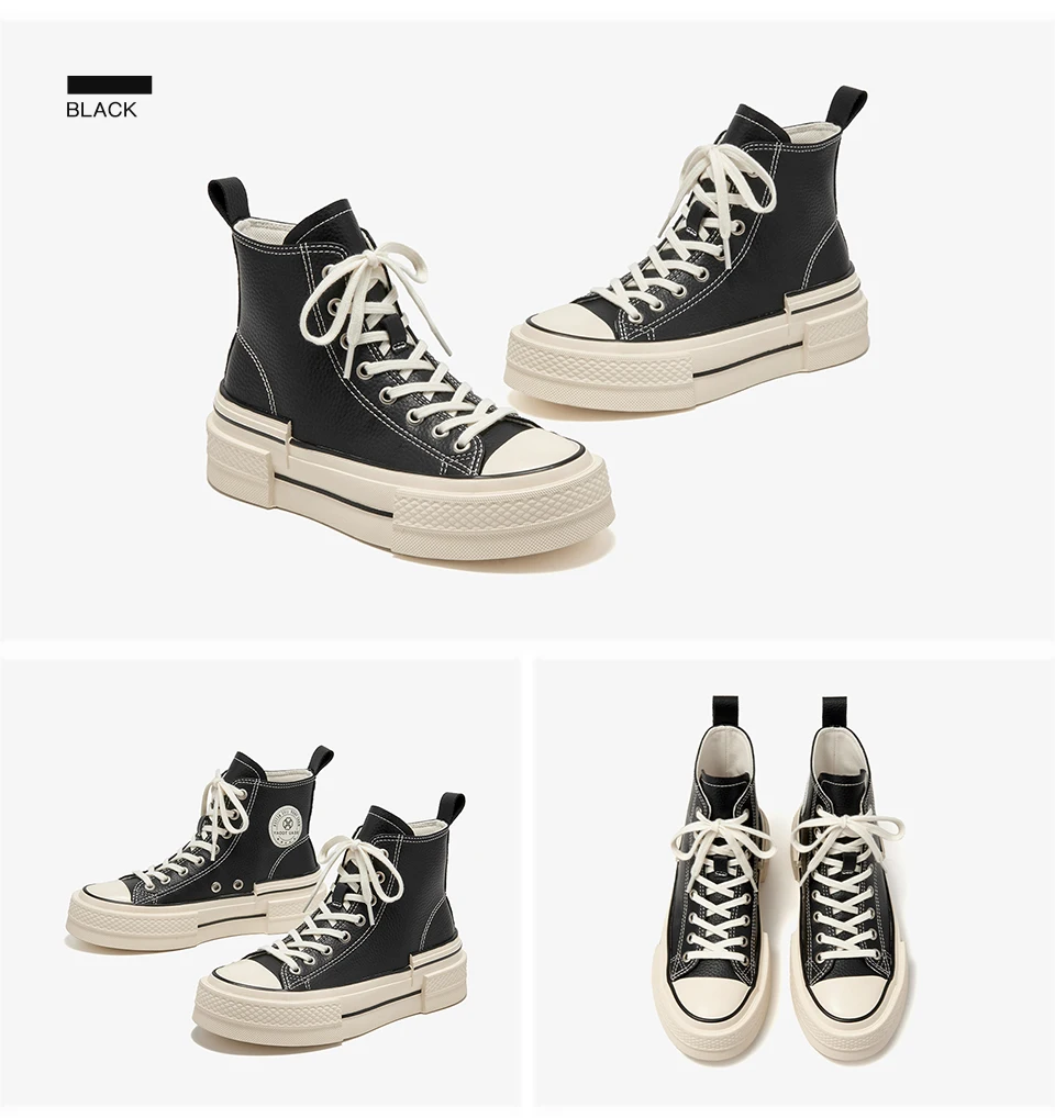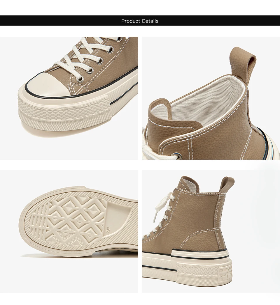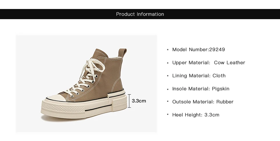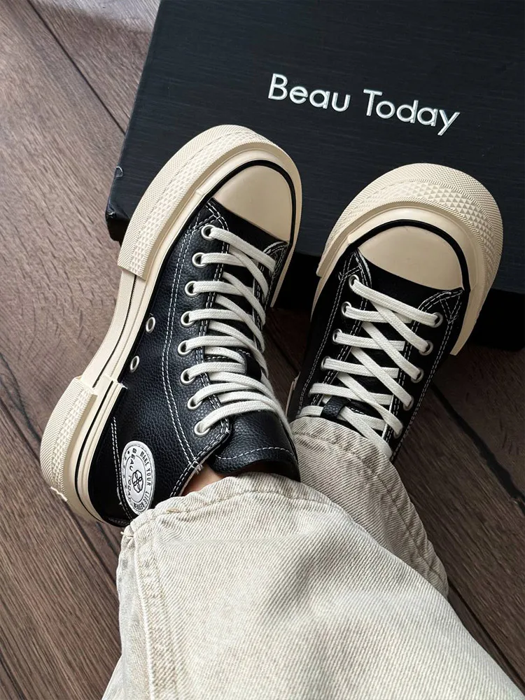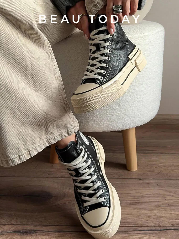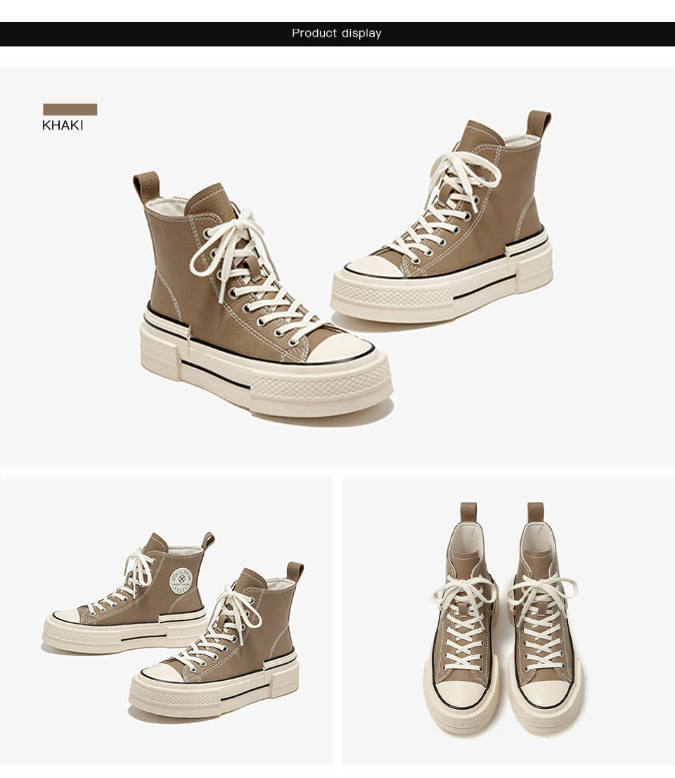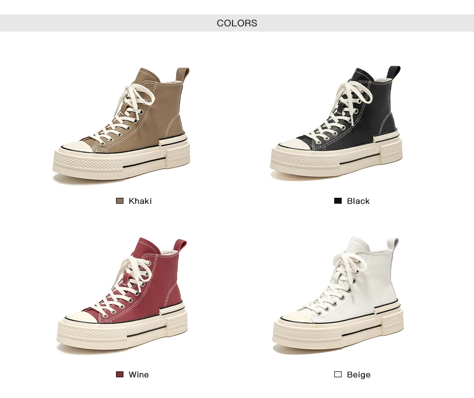 BEAUTODAY High-top Canvas Shoes Women Geninue Cow Leather Spring Sneakers...