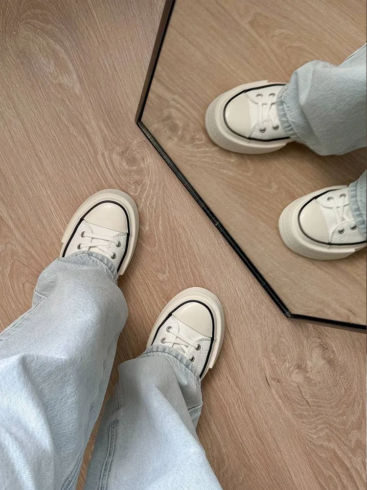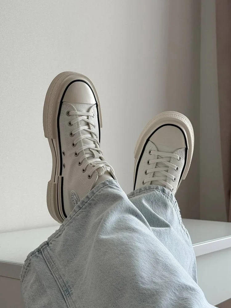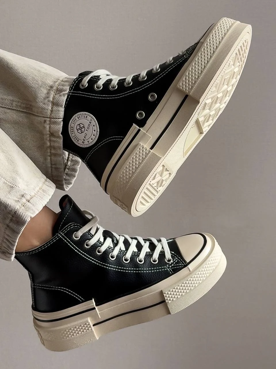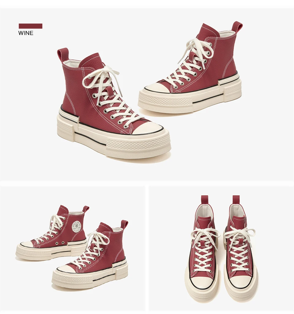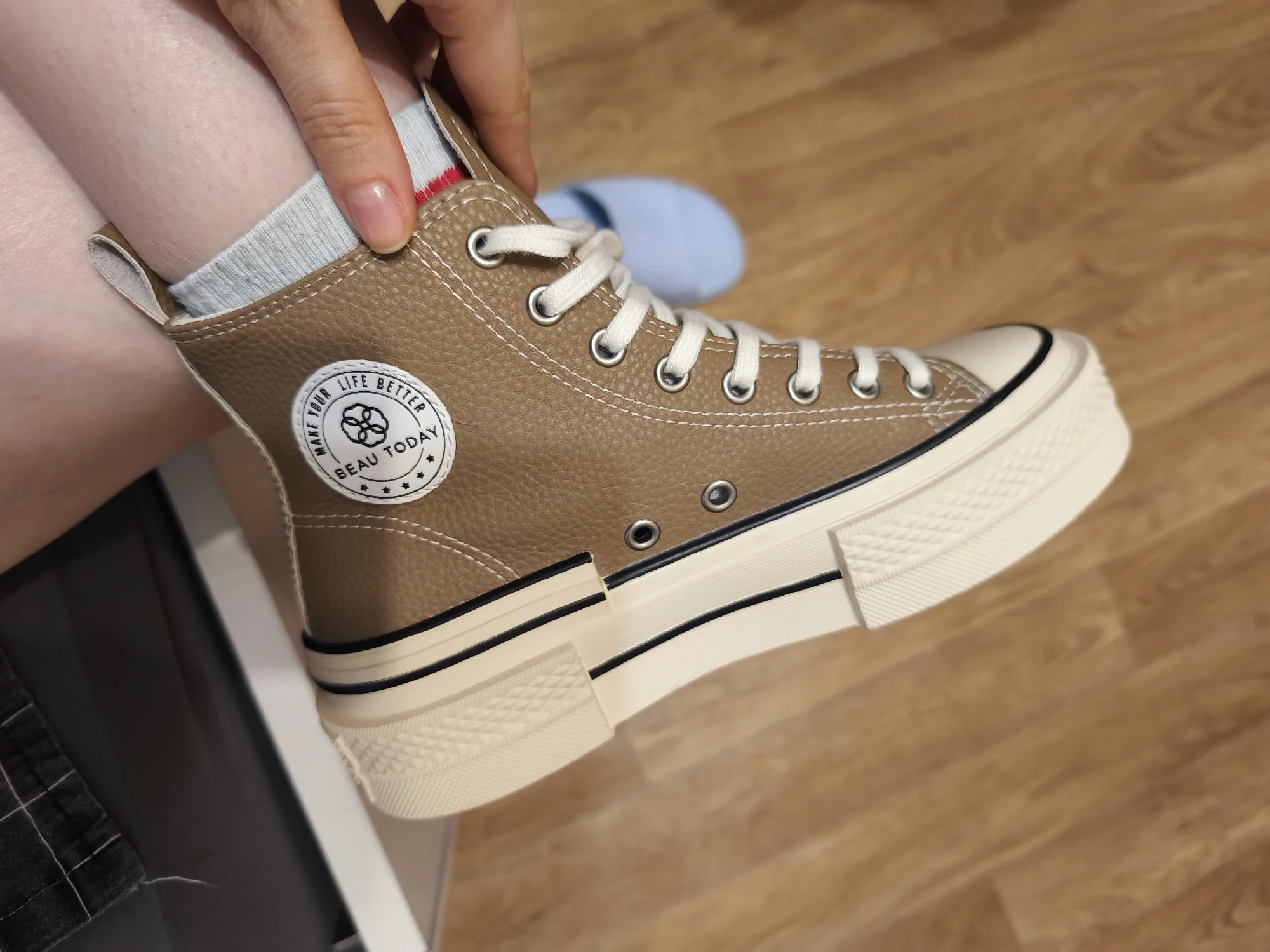 BEAUTODAY High-top Canvas Shoes Women Geninue Cow Leather Spring Sneakers...