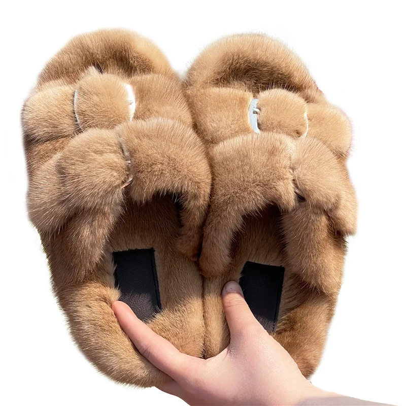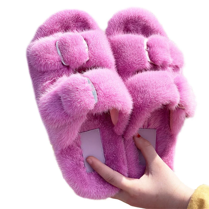 Европейские тапочки из 100% меха норки; Роскошные модные меховые тапочки из...
