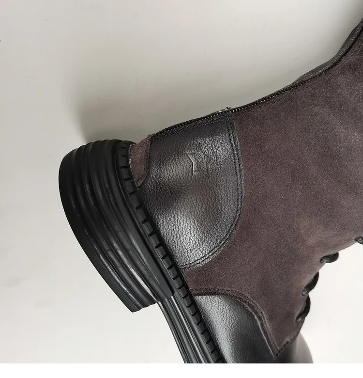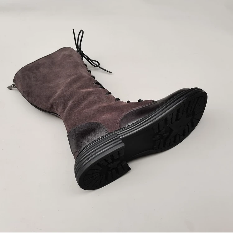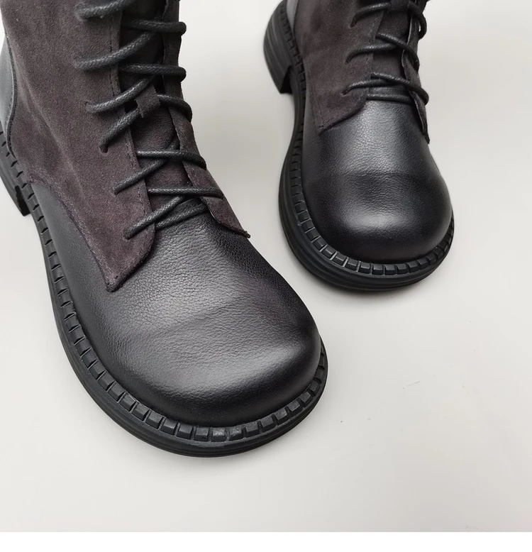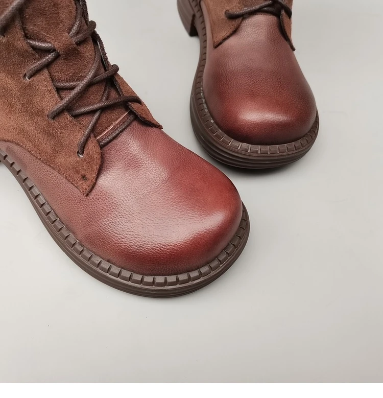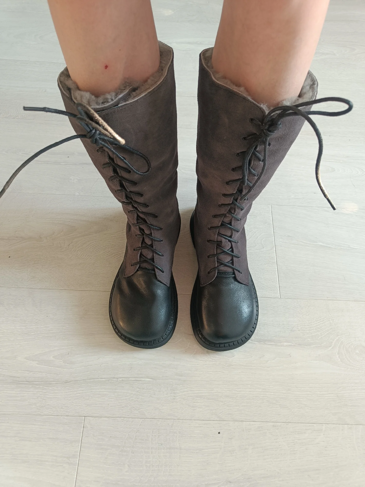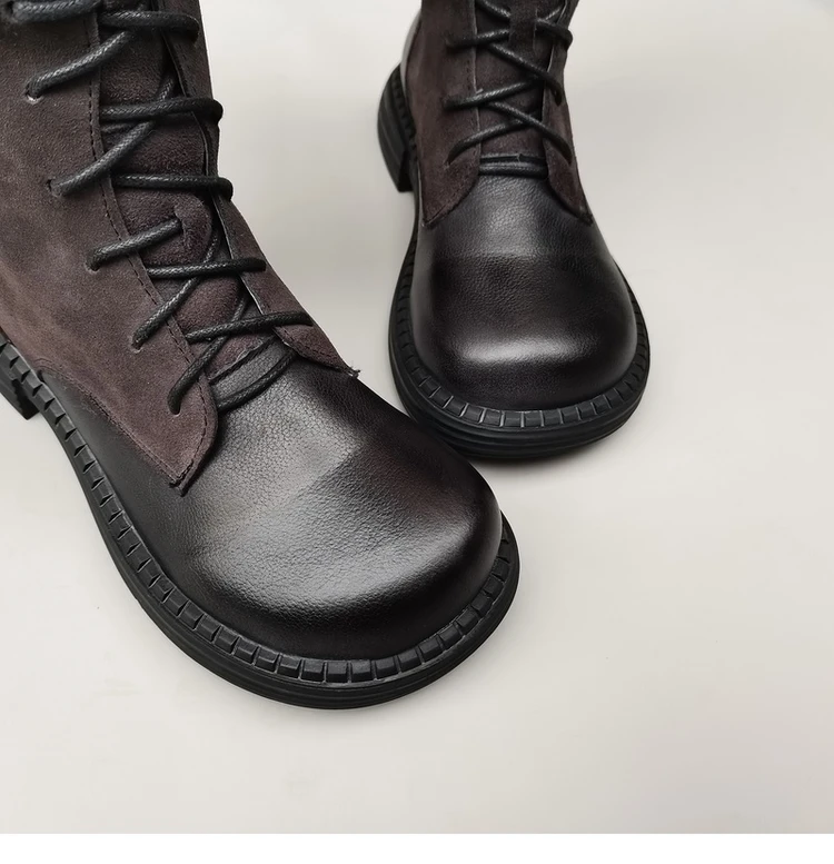 Женские ботинки из натуральной кожи на шнуровке, с широким голенищем, цвет коричневый/черный