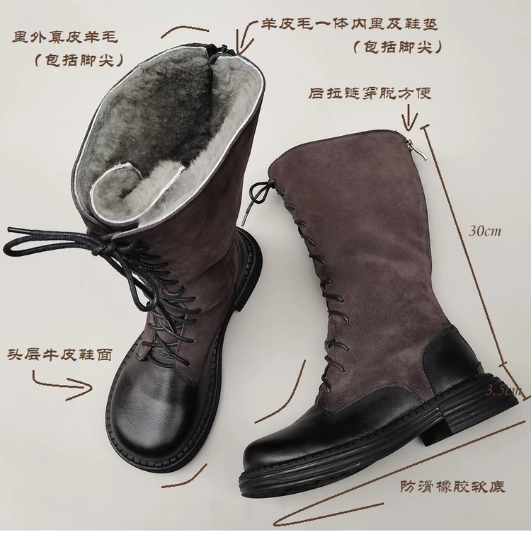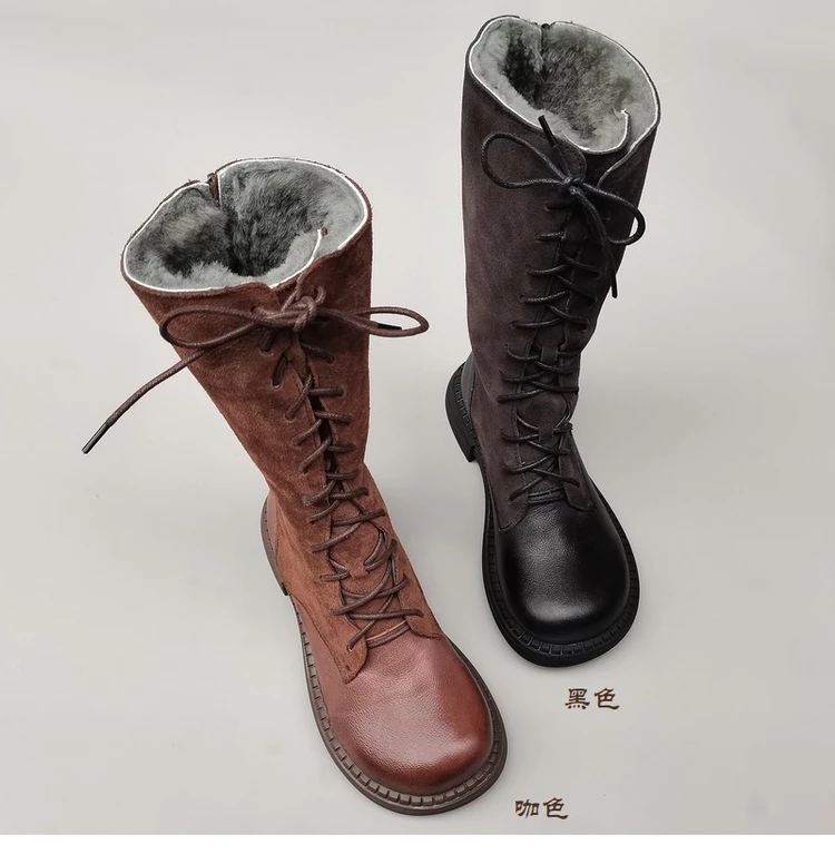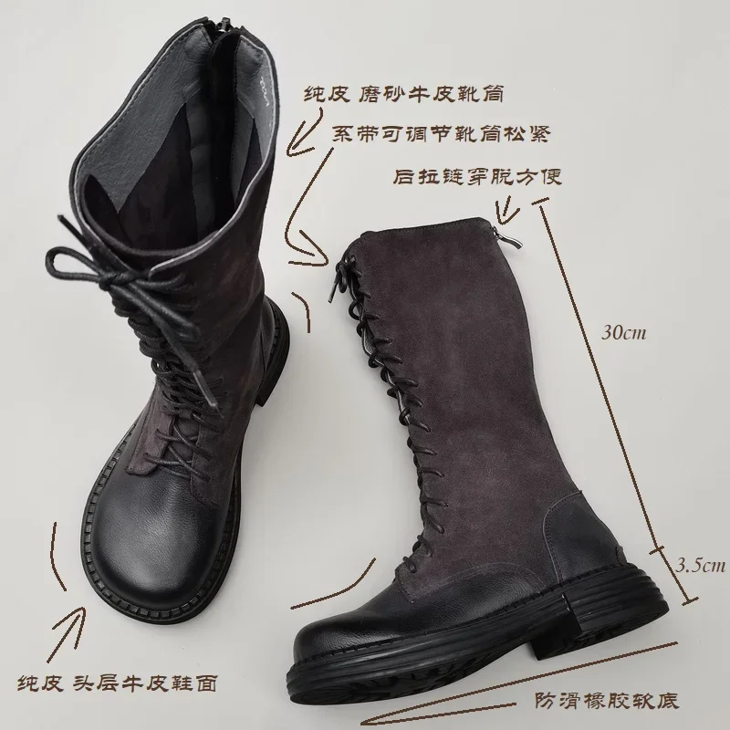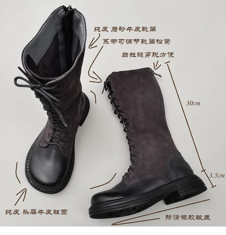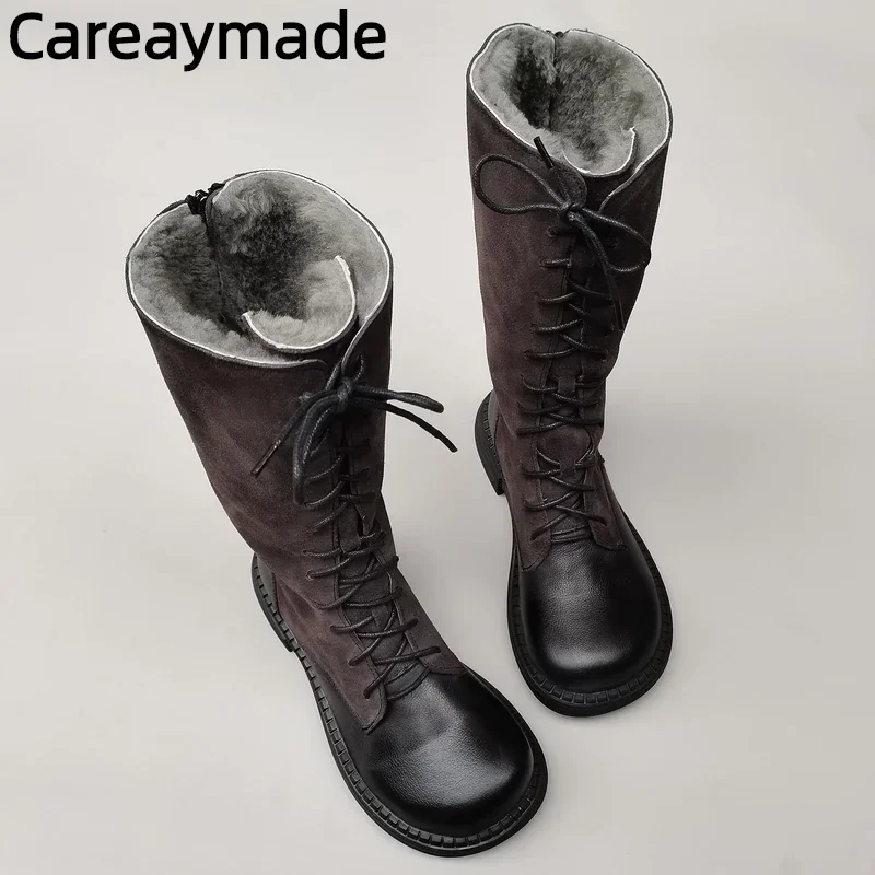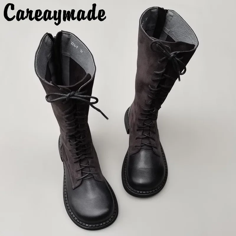 Careaymade-Genuine leather big head wide edition women's boots long high tube...