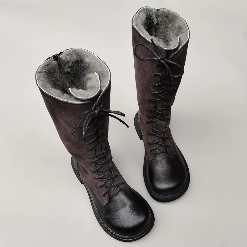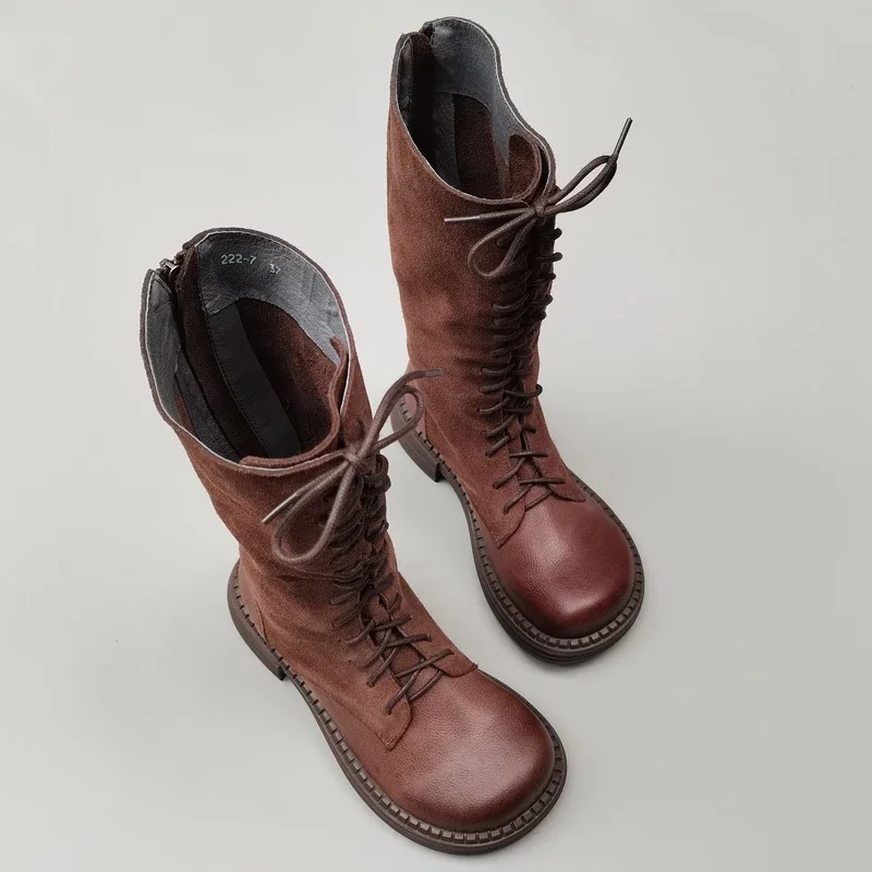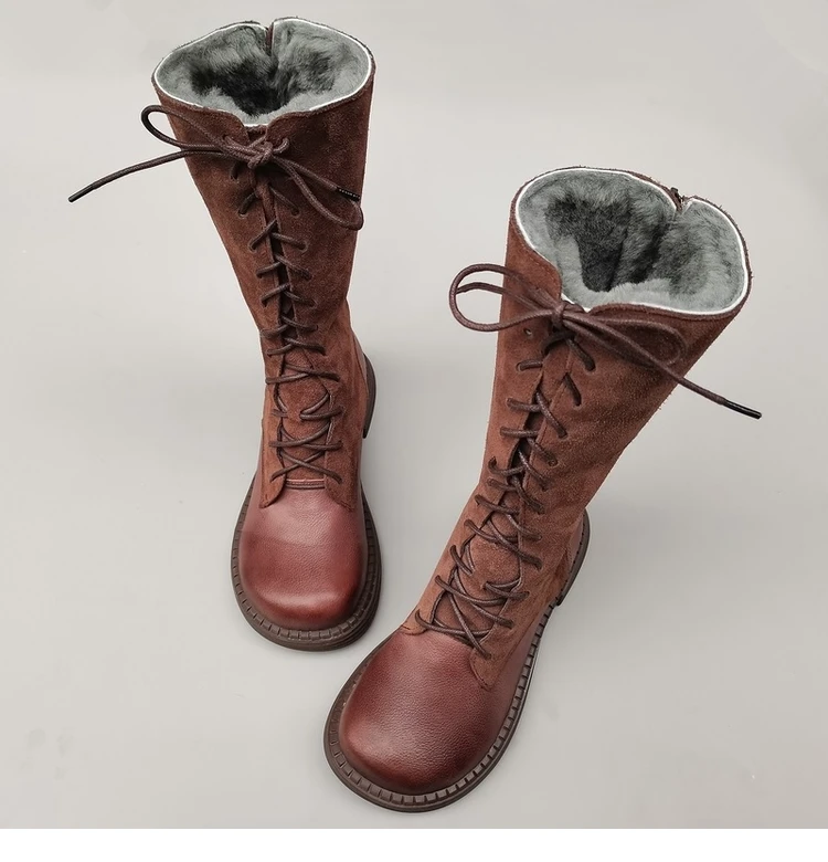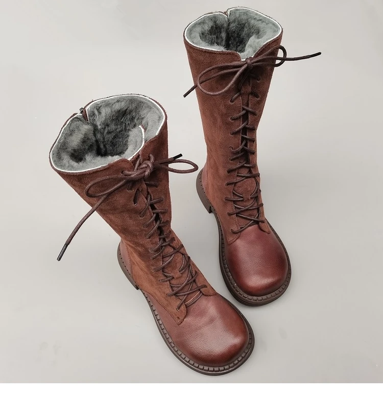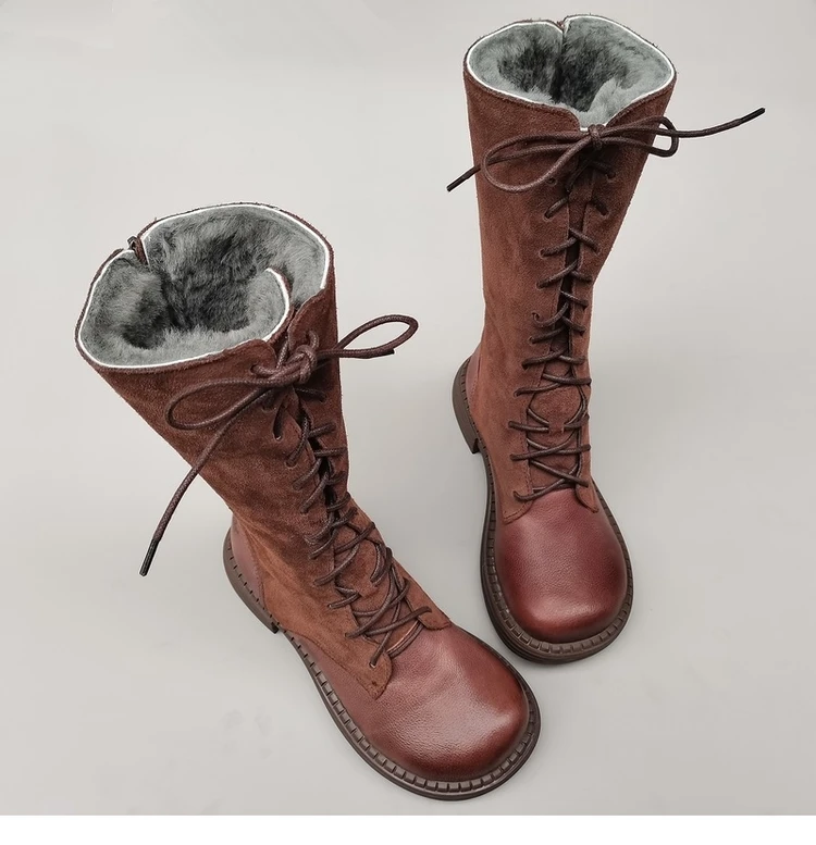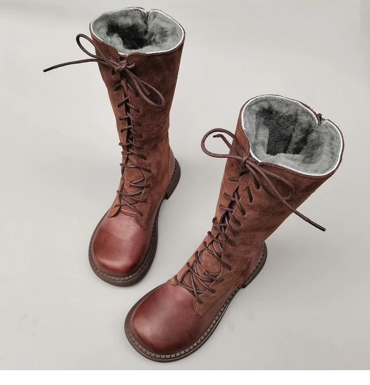 Careaymade-Genuine leather big head wide edition women's boots long high tube...