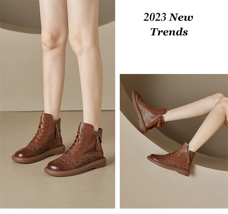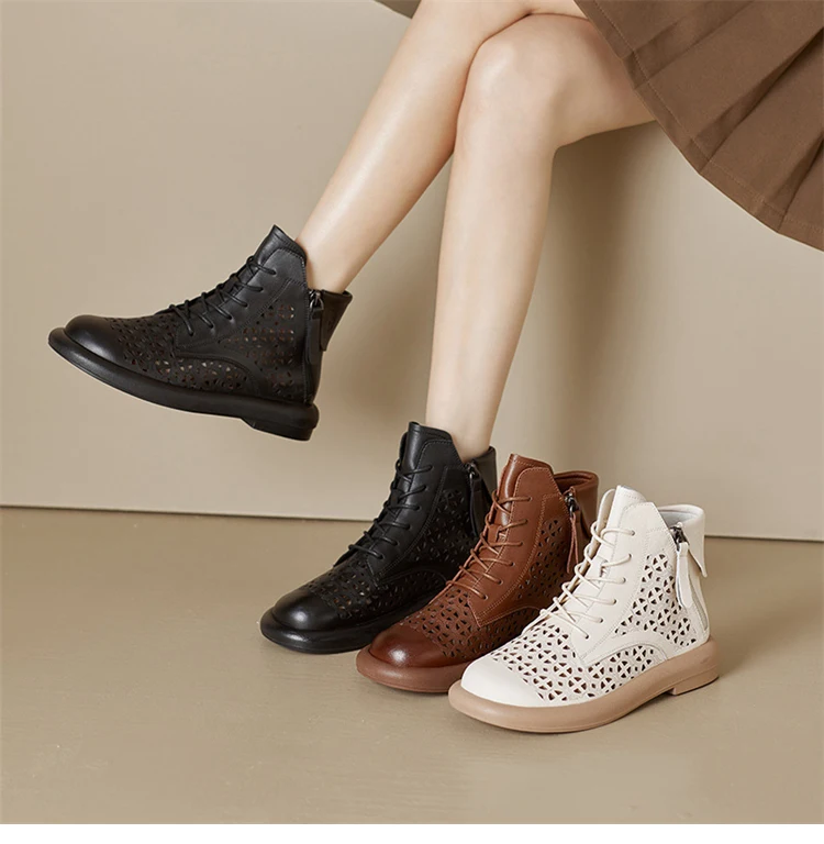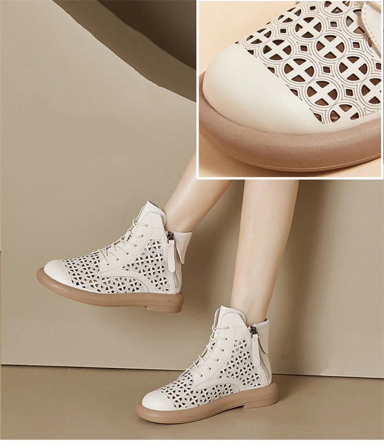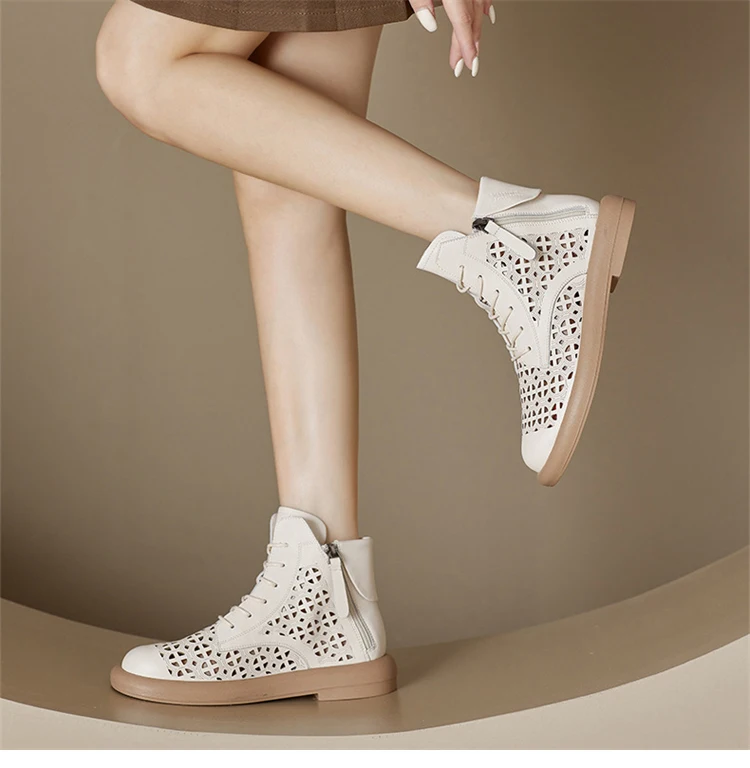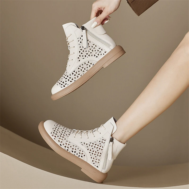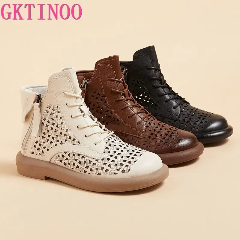 GKTINOO Women's Boots Sneakers Hollow Out Fashion Genuine Leather Shoes For...