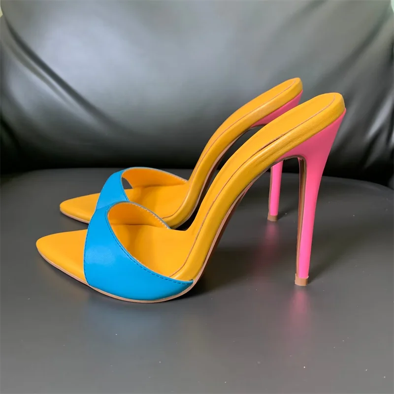 Super-high Heel Slippers Women Shoes Summer Peep Toe Mixed Colors Stiletto...