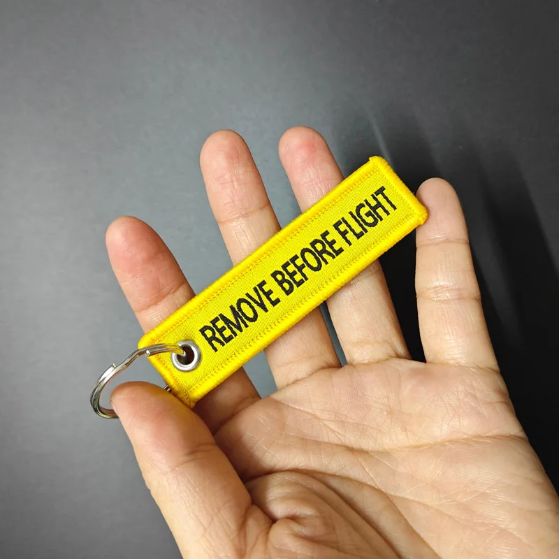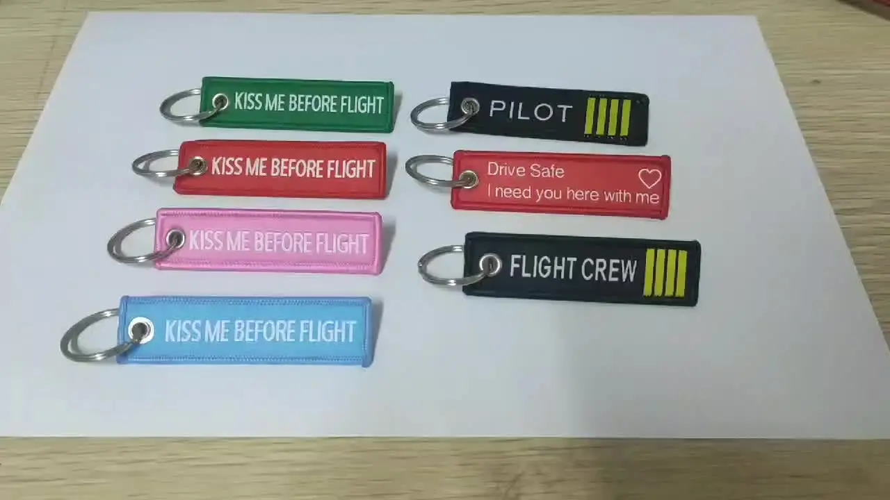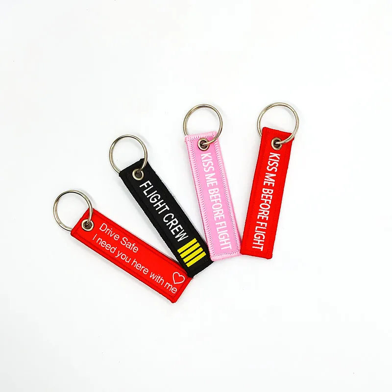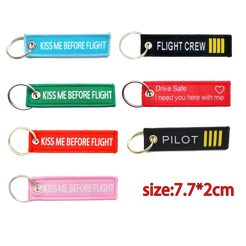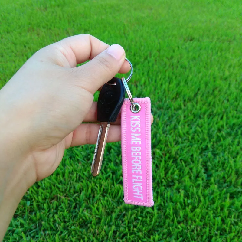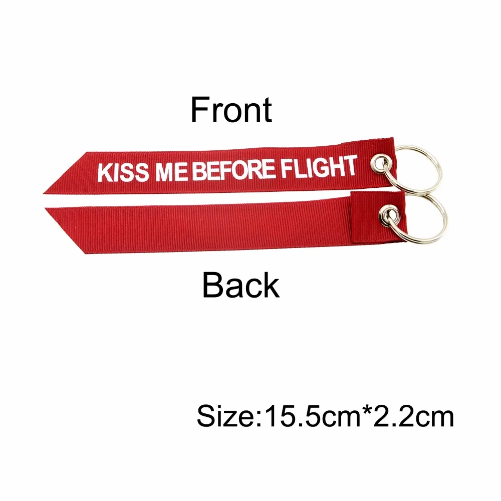 5pieces New Drive Safe Key chain Ribbon KISS ME BEFORE FLIGHT CREW Outdoor travel bag pendant Warning fashion decoration