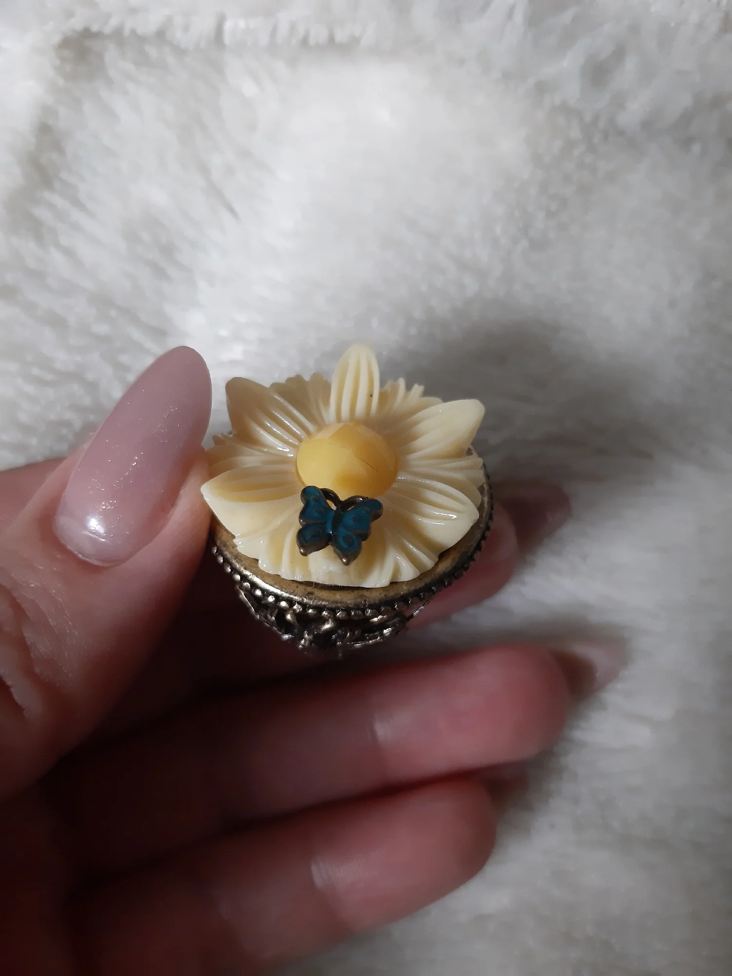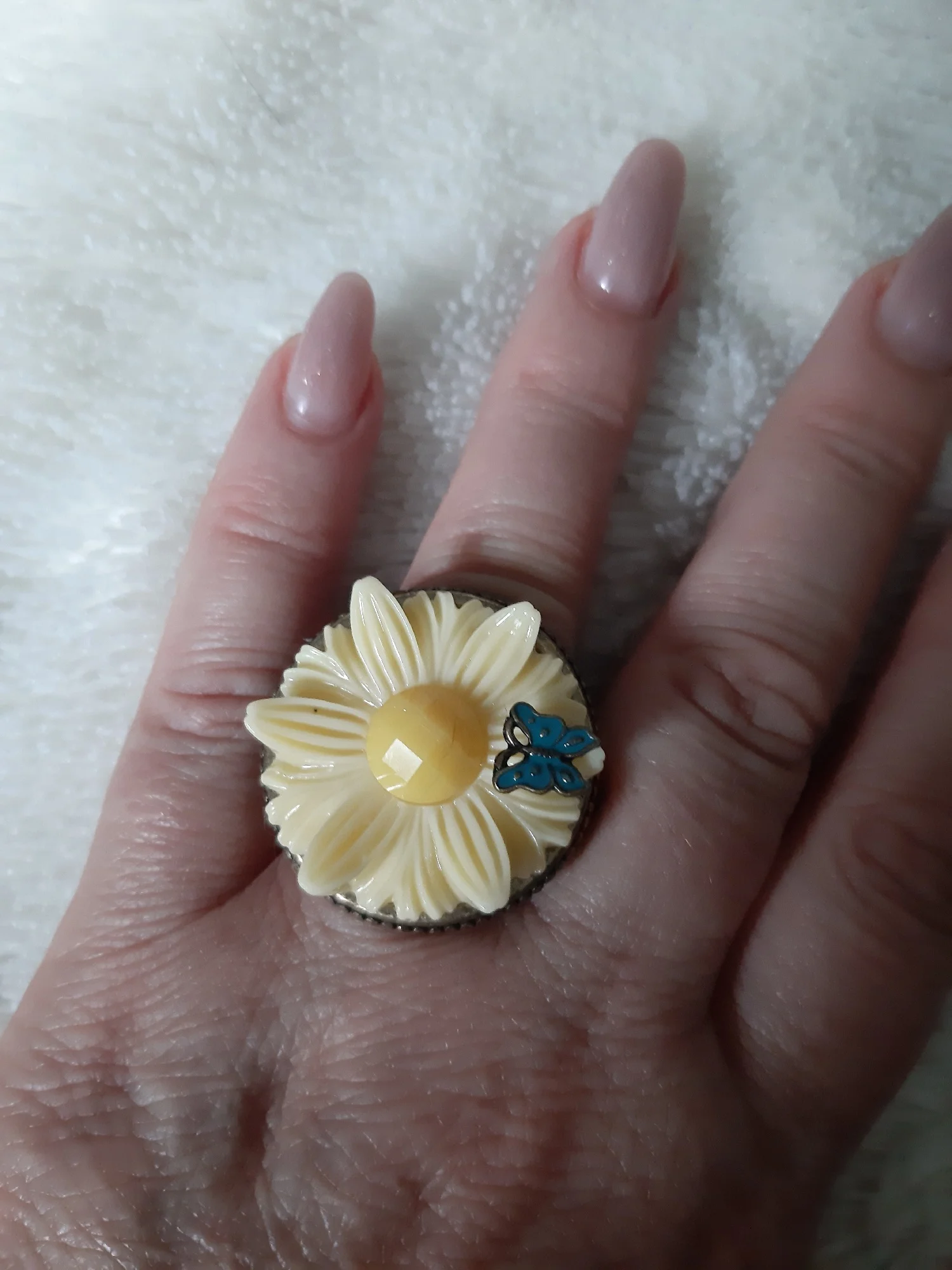 крупное. взяла на переделку, очень уж красивая шинка. надеюсь получится вынуть цветок .2177 u. 7 августа 2025