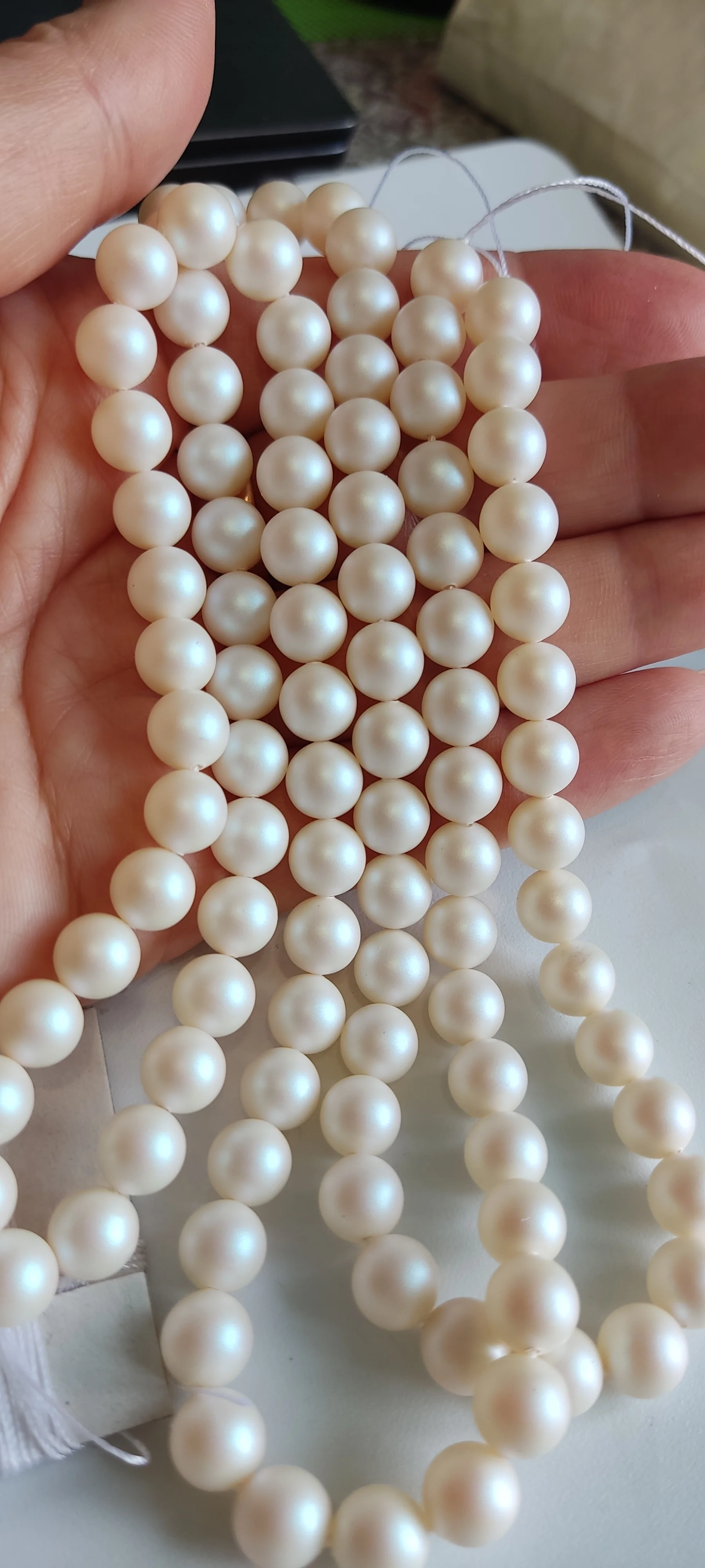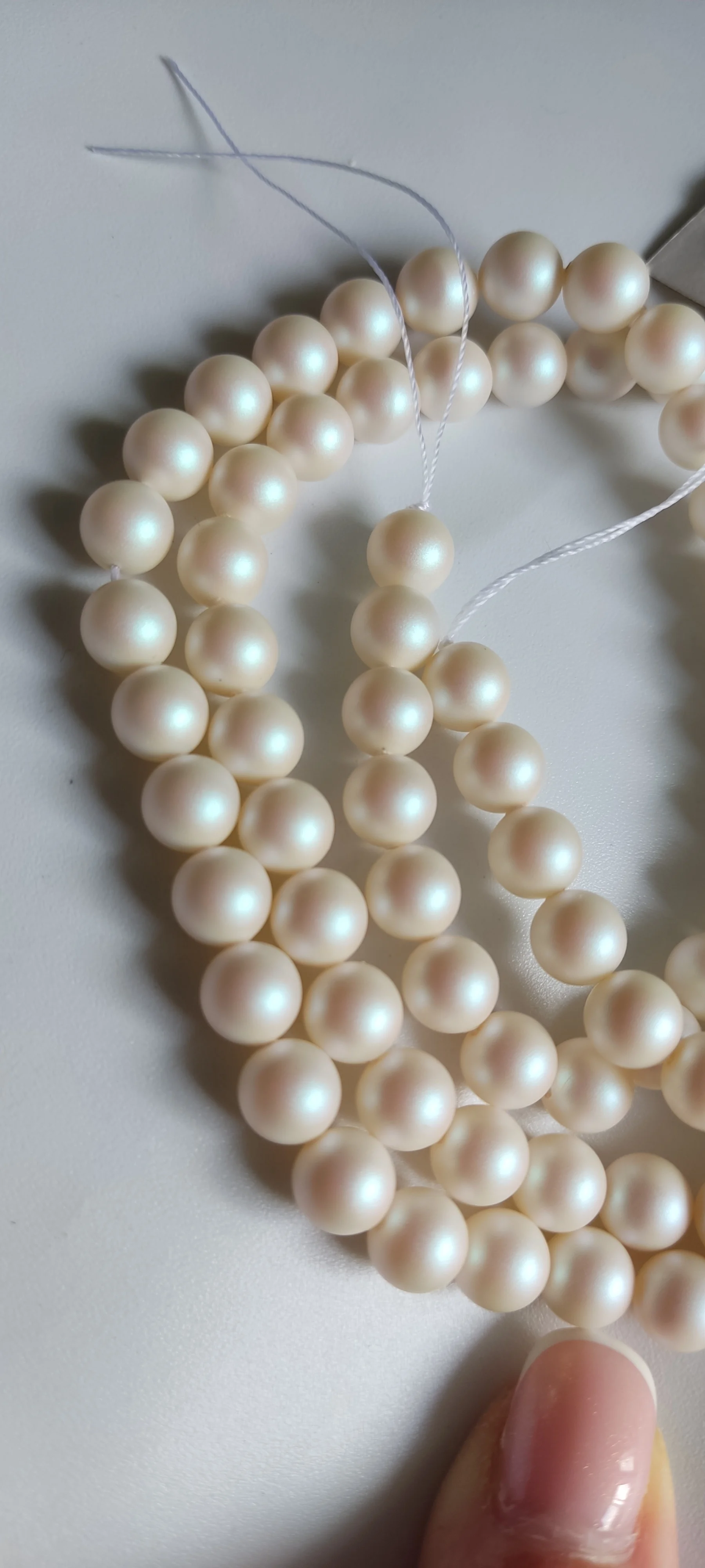 Такой жемчуг заказывала первый раз, очень понравился.😍 Заказала 100 шт, диаметр соответствует, брака нет, все идеального качества, собраны были на одной нити, упакованы надёжно, правда отправку сделали на почту России, благо пришли быстро. Сразу сделала два колье, подсмотрела у блогера Натальи, носить можно и по отдельности, бусин осталось ещё на однорядный браслет. Обхват шеи 33 см у меня.Заказом довольна! На тросик 35 мм проходят свободно, а вот на 45 мм заправить концы в двойном продевании в бусину уже с трудом, пришлось потрудиться и подобрать несколько шт с более менее подходящим отверстием, маленькие отверстия в бусинах.
