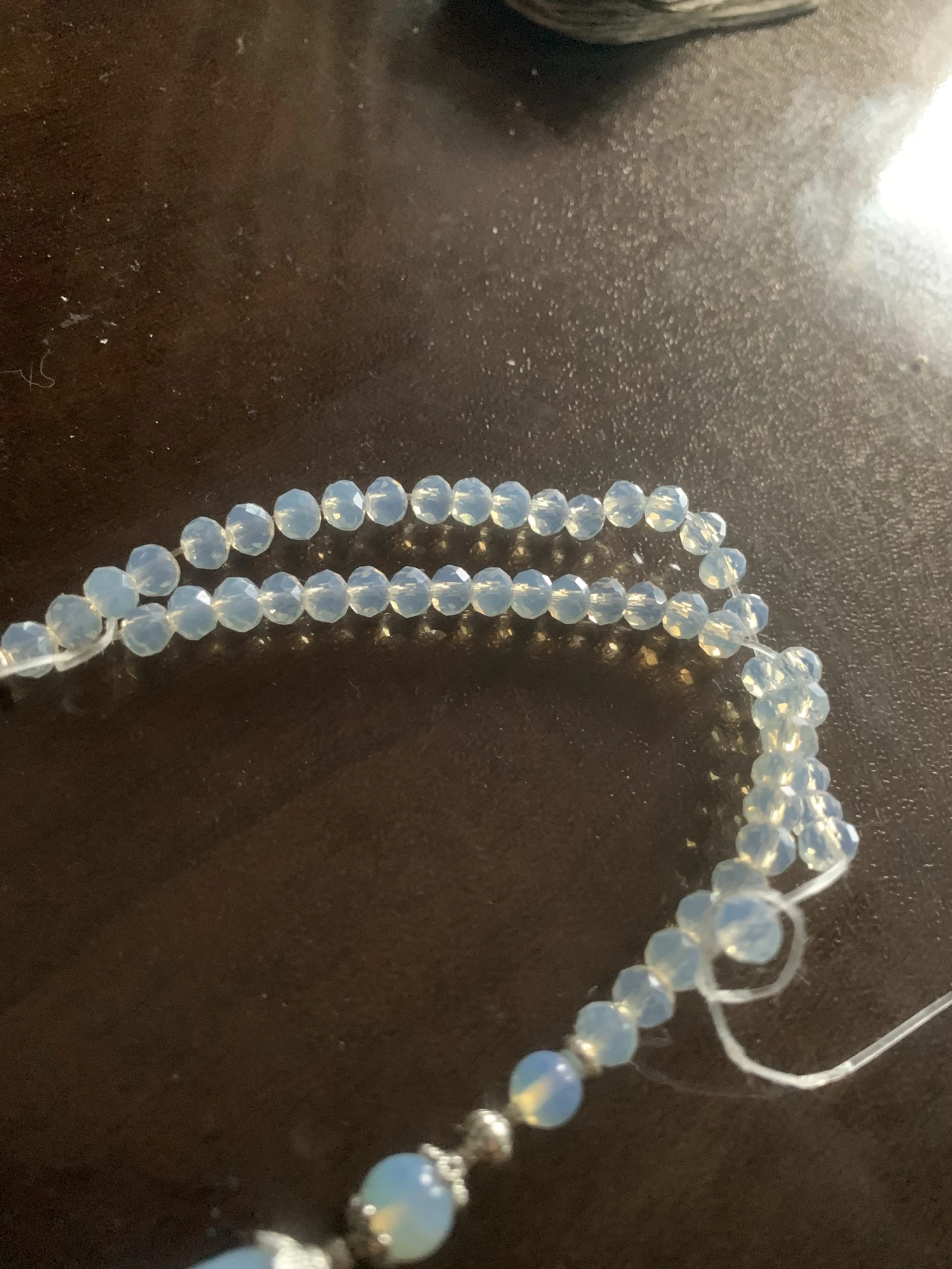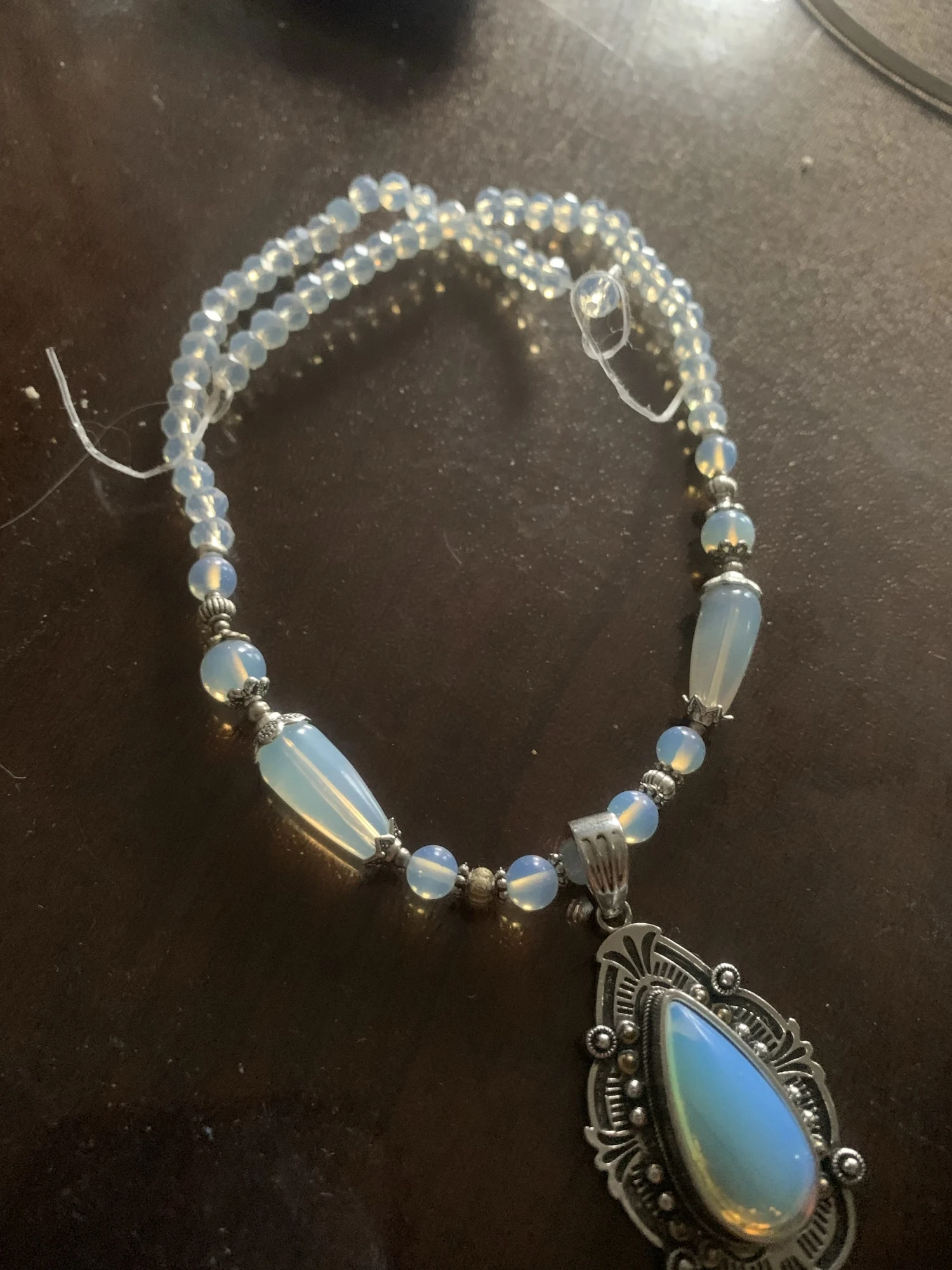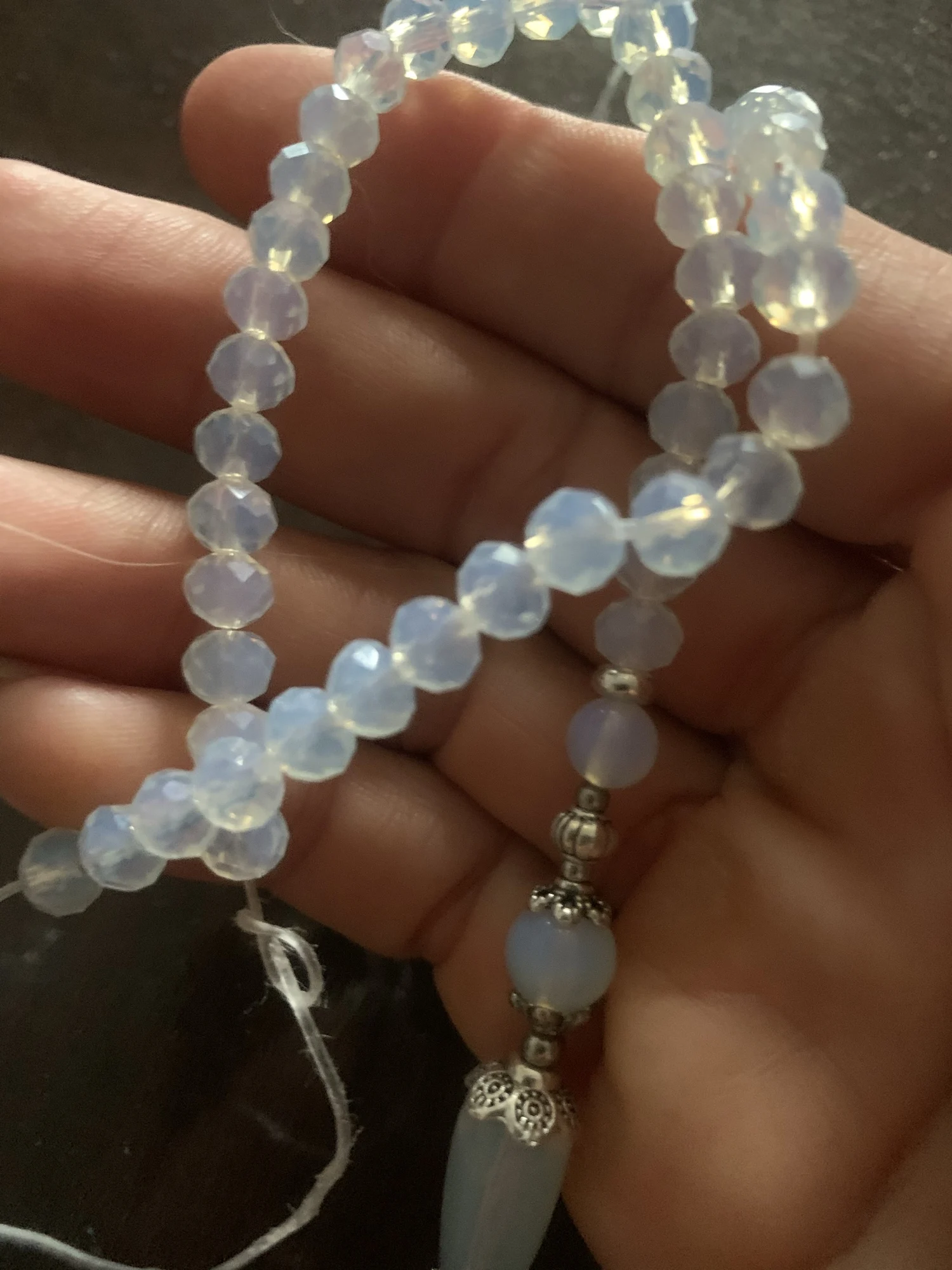прелестные бусины, стекло похожее на лунный камень, 53 штуки, собрала очаровательное ожерелье