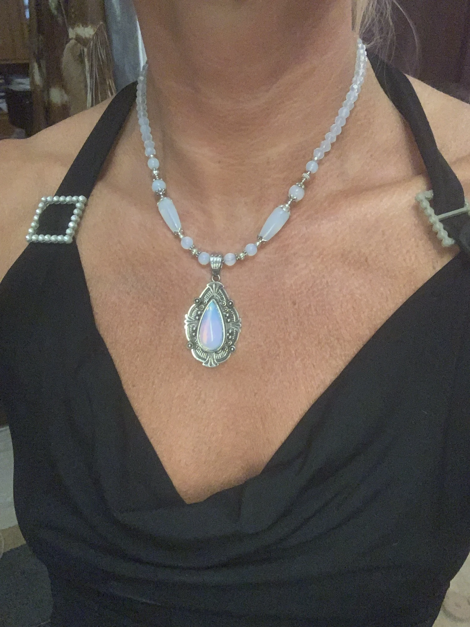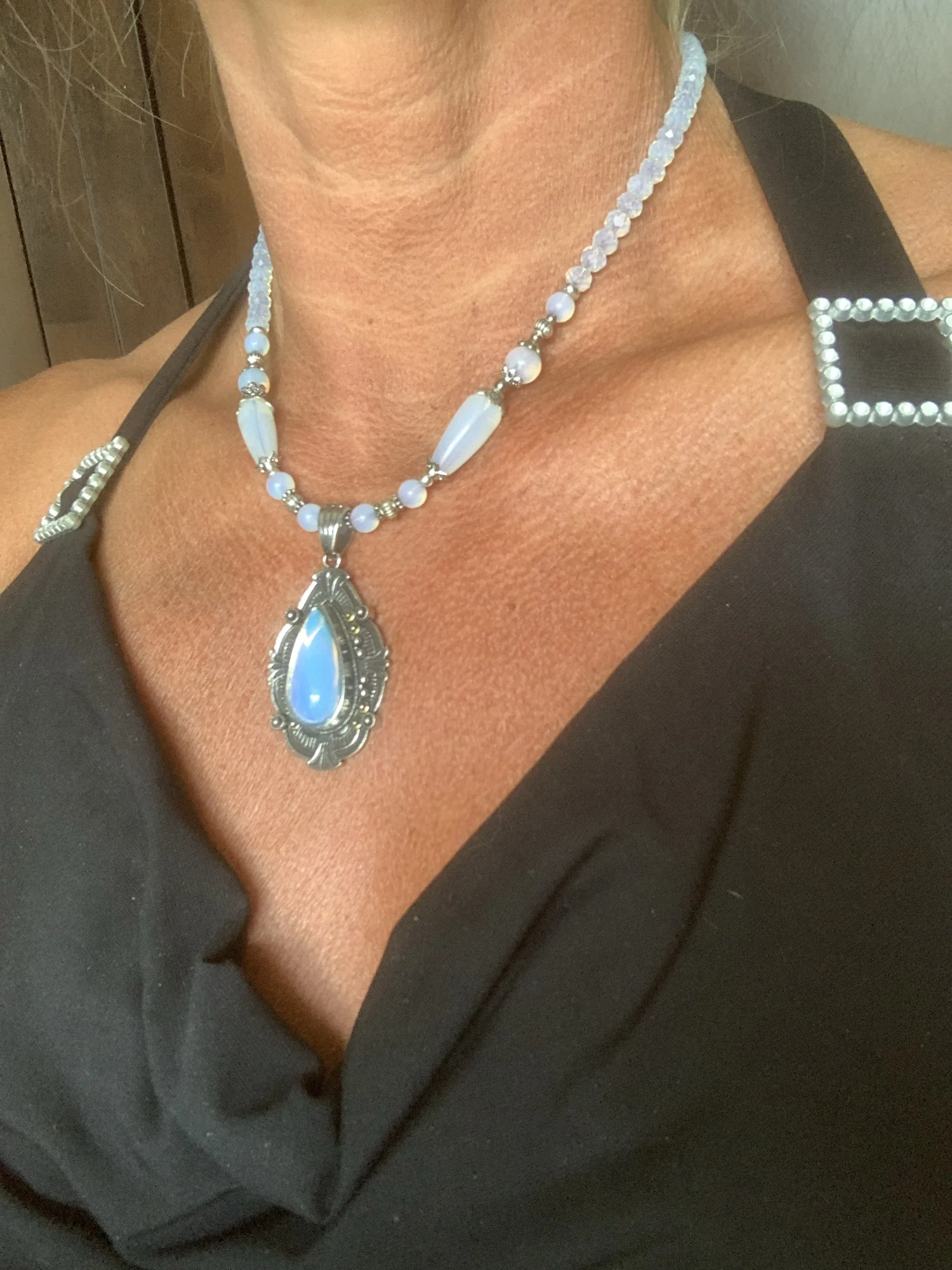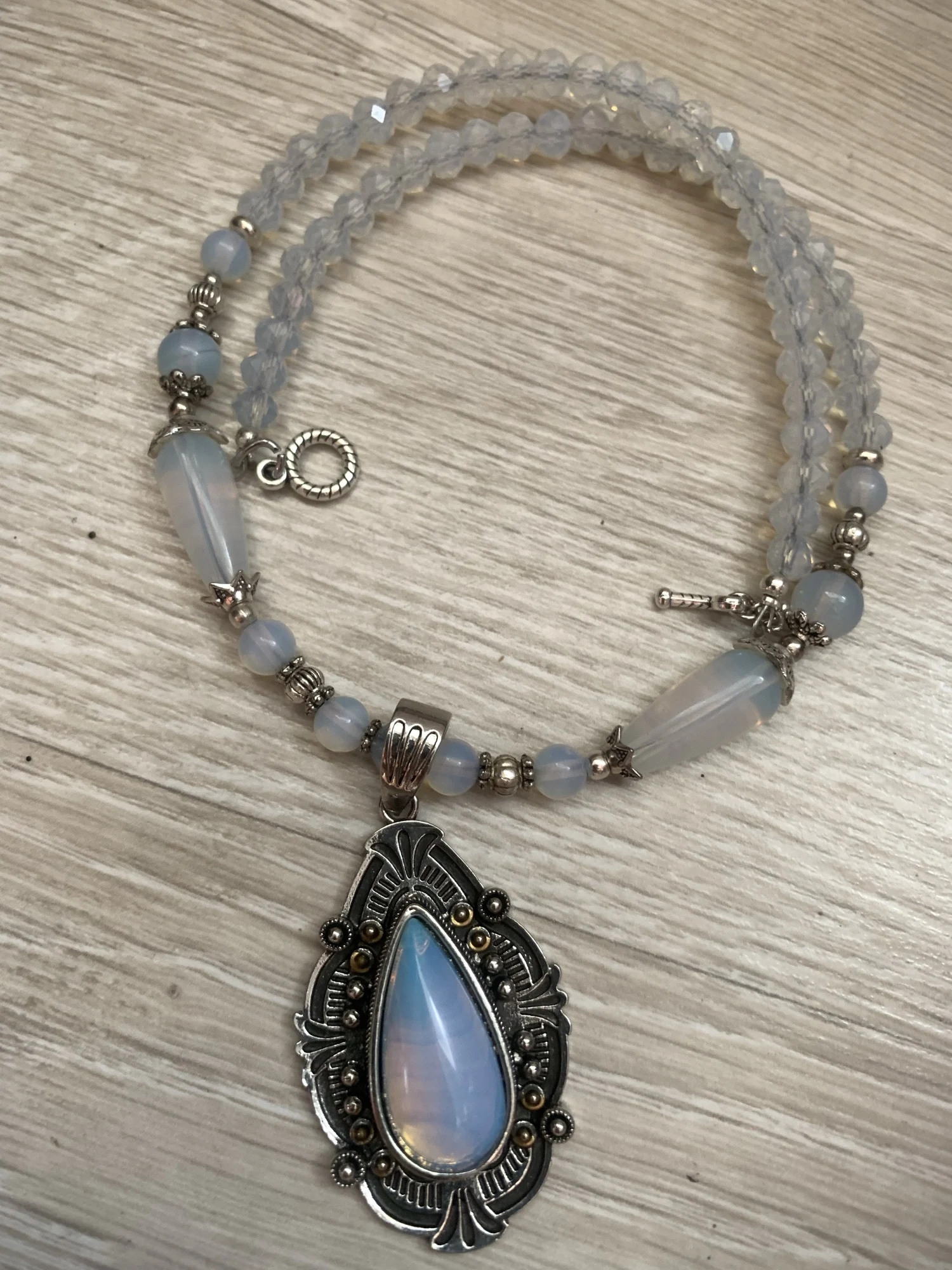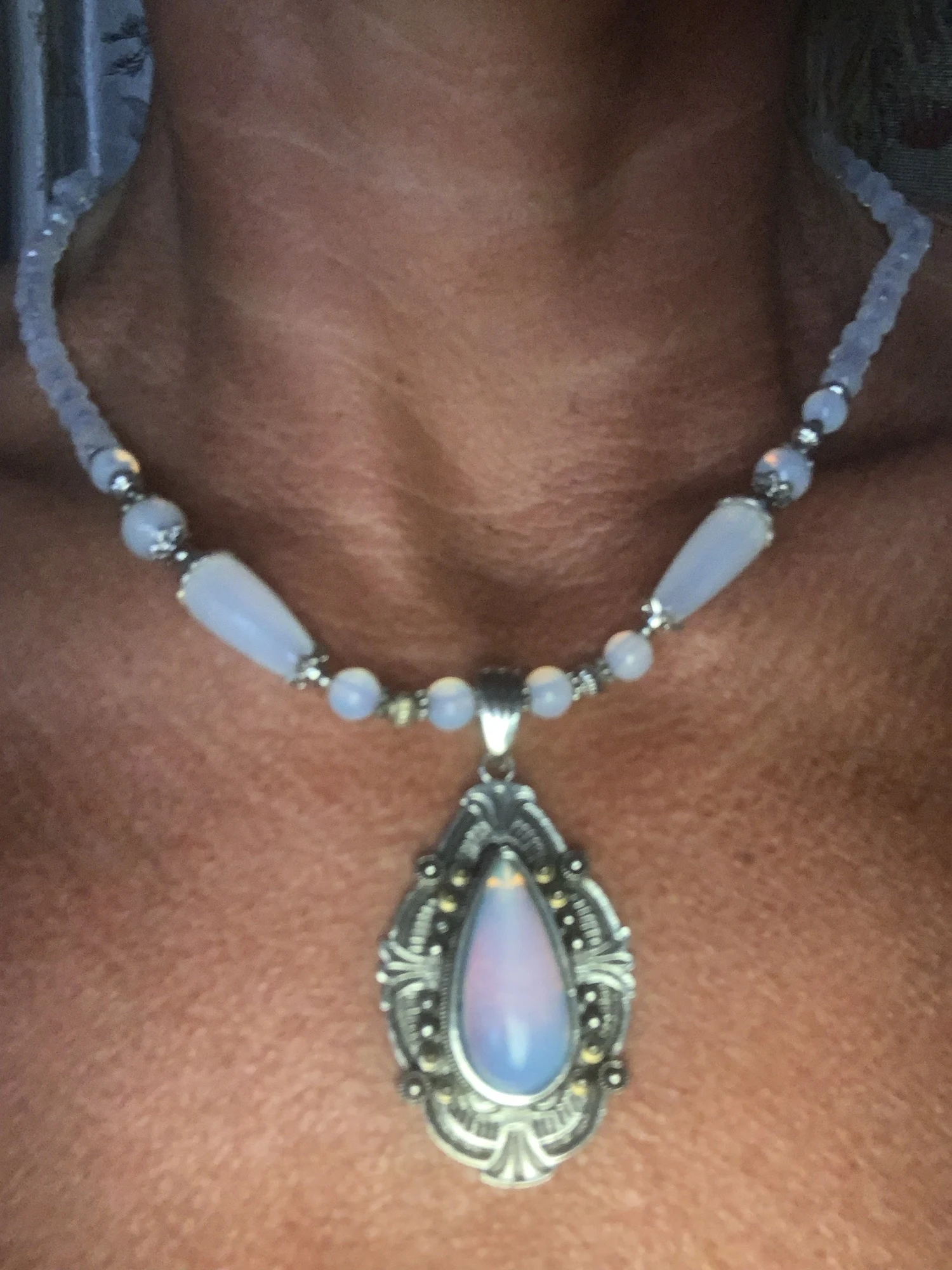 прелестные бусины, стекло похожее на лунный камень, 53 штуки, собрала очаровательное ожерелье