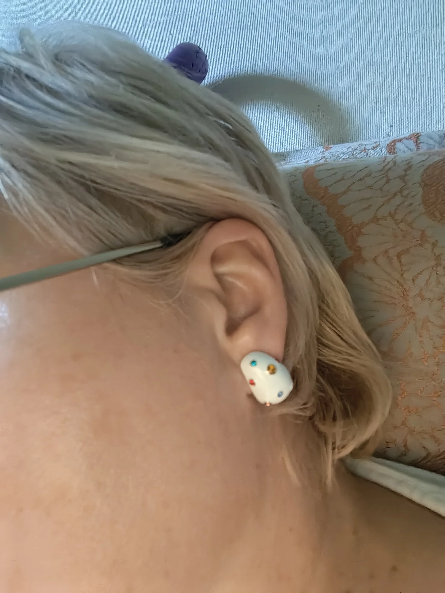 Серьги симпатичные, но по фото я не поняла что серьги без штырька, там 2 вида састежек, но я решила, что они оба со штырьком, но крепятся разными заглушками, это я не верно поняла. Ну и в итоги это серьги с такой застёжкой для тех у кого уши не проколоты, в моем случае это минус, сижу в них 30 мин и у меня уже болят уши, зажимы тугие. Так что носить их не смогу. Будьте внимательны при выборе застёжки.