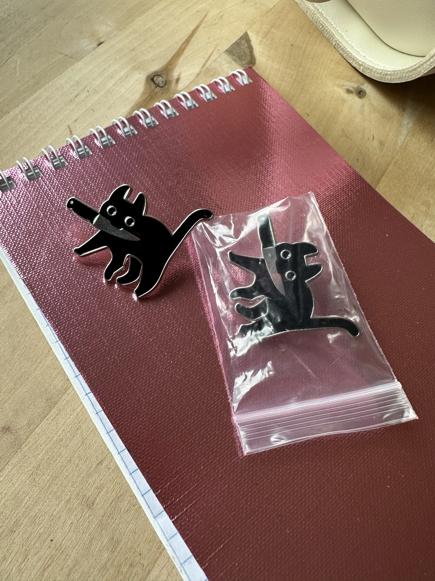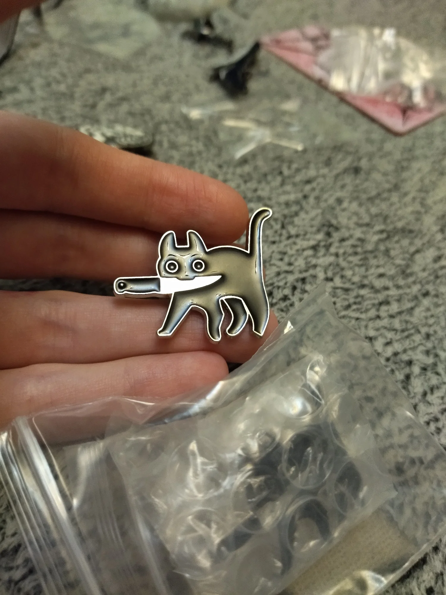 Эмалированная брошь котик с ножом YWOSPX