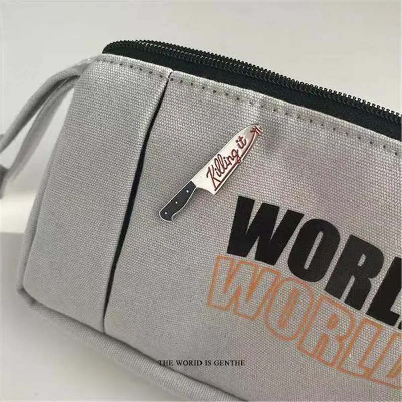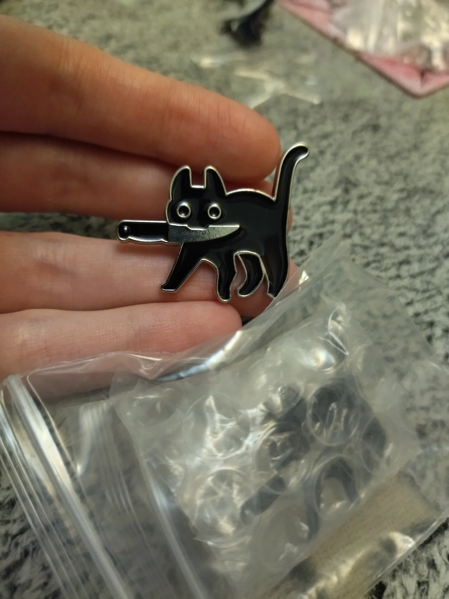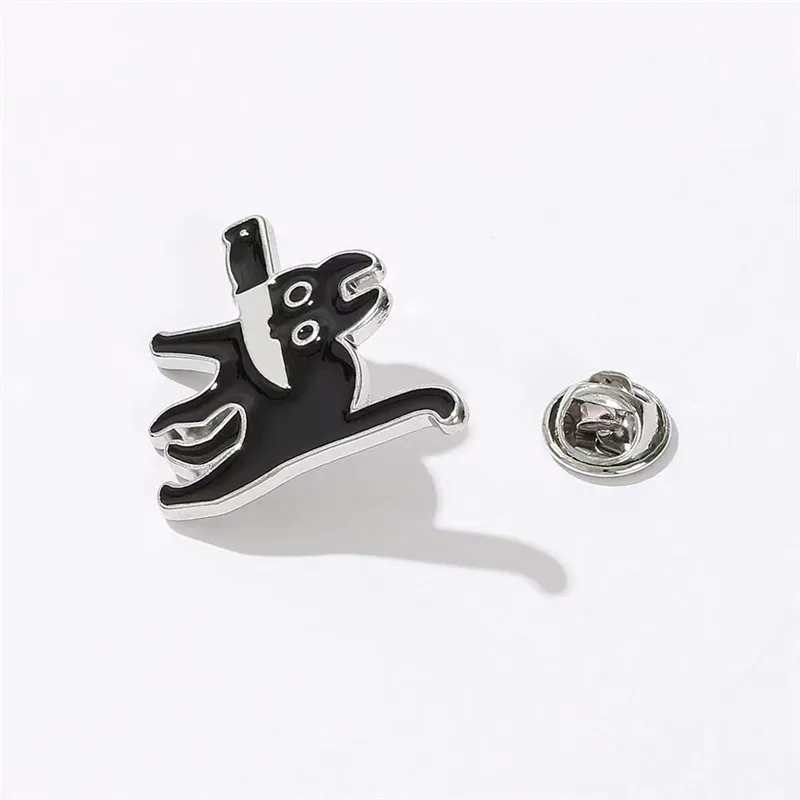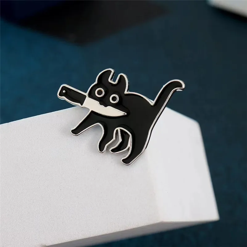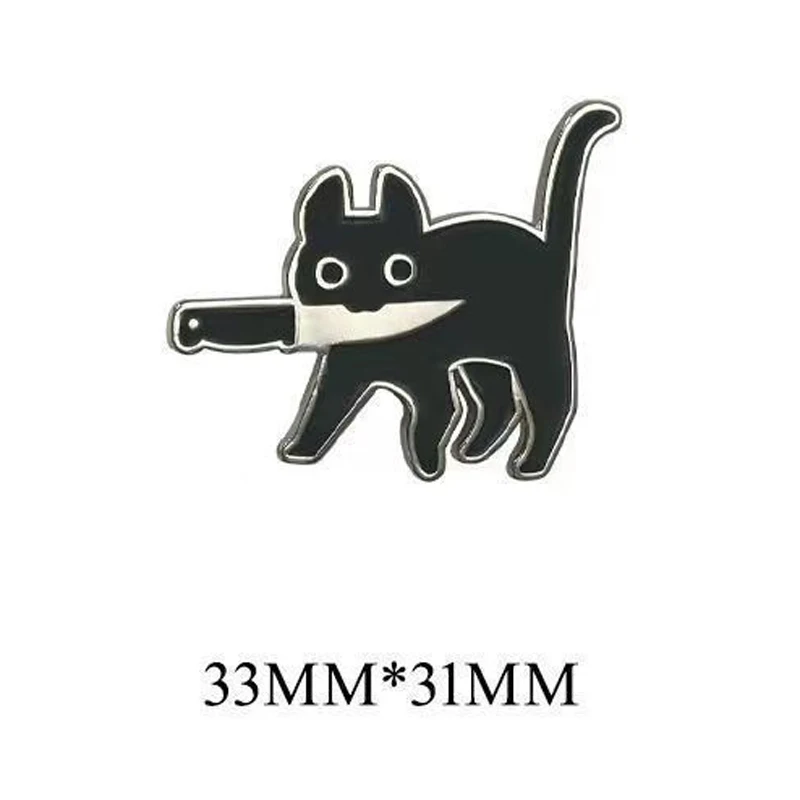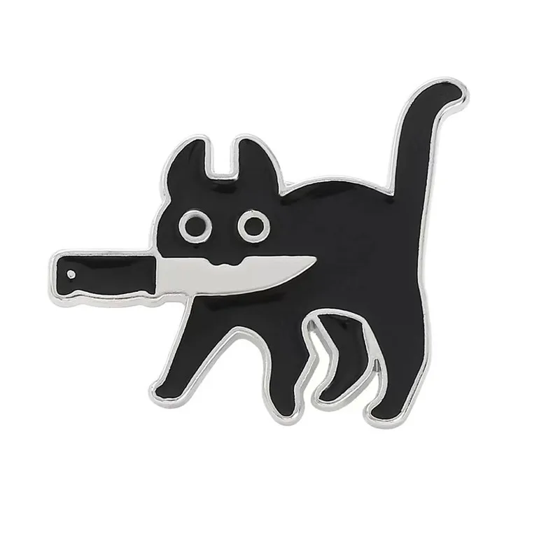 Cartoon Cat with Knife Enamel Brooch Funny Killers Black Kitty Mew Mew Denim...