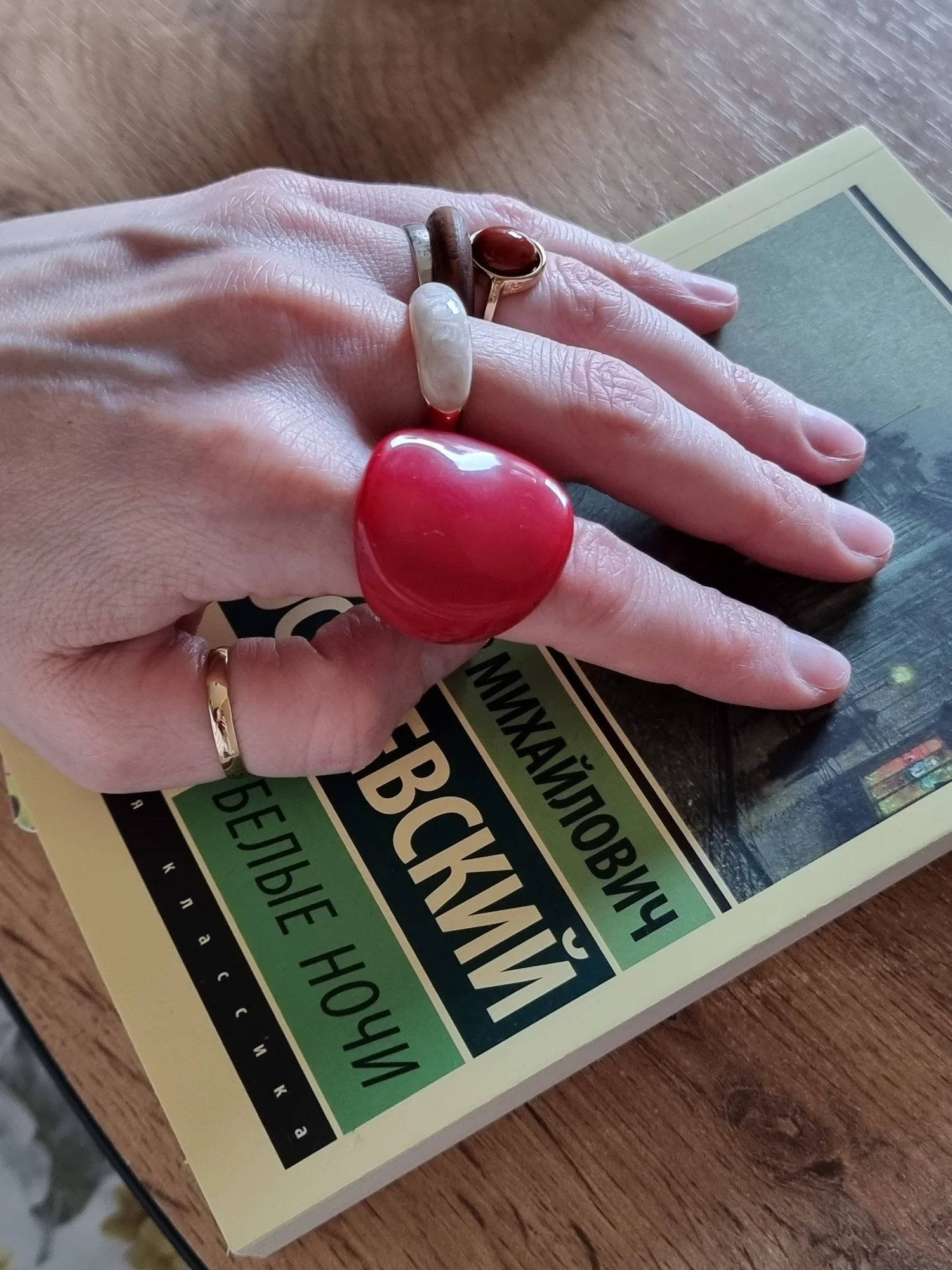 Retro Rings Set for Woman Red Green Resin Gold Color Ring Pink Butterfly Flower...