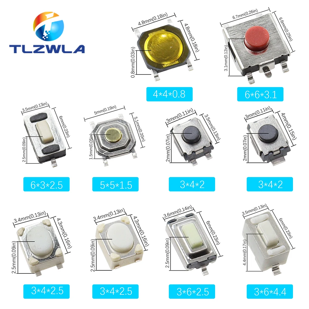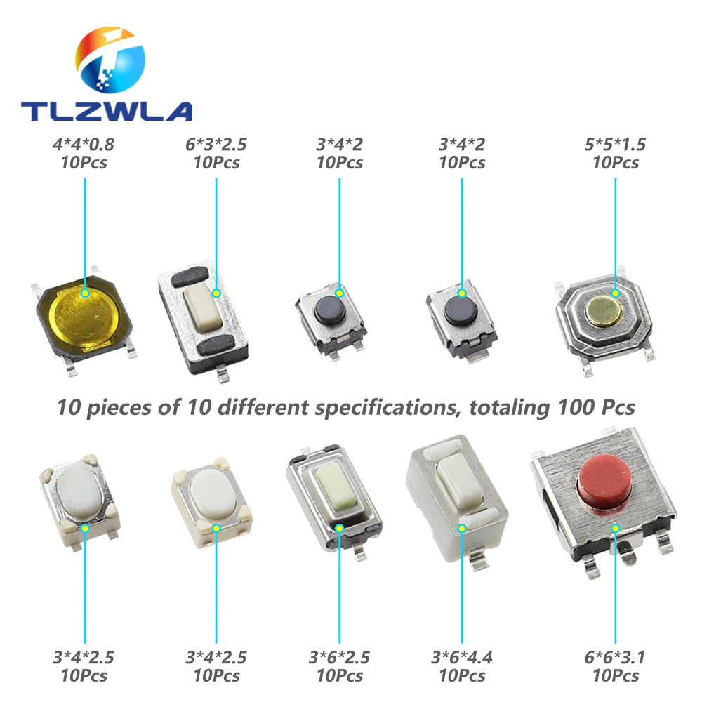 100PCS 10 Models Tact Switch Tactile Push Button Switch Kit: 3*4*2mm 3x6x4.3mm...