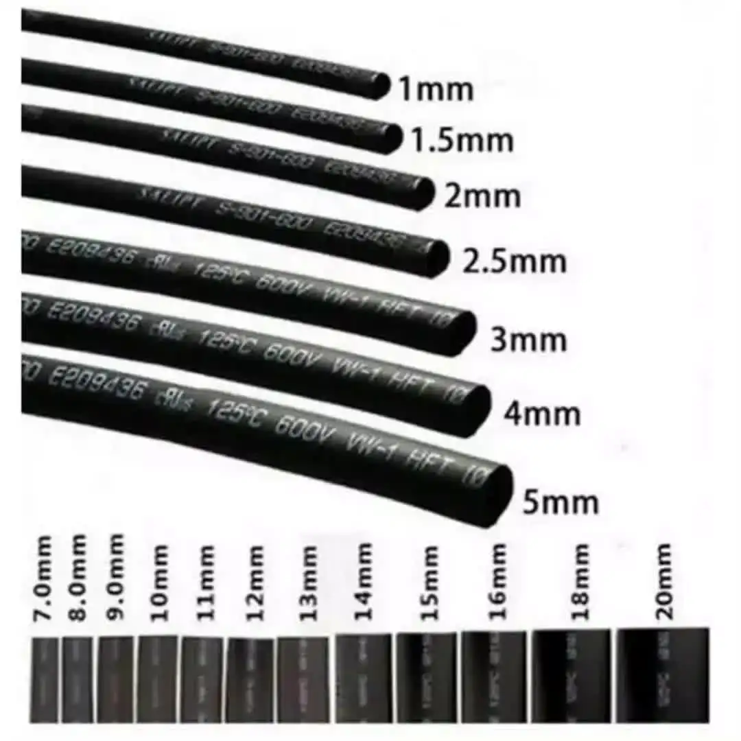 Термоусадочные трубки 2:1, черные термоусадочные трубки диаметром 1 мм, 2 мм, 3...