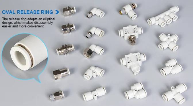 Tube Fittings Are Easy To Install, Flexible And Space-saving, 360-degree Rotate Freely, Release Rings Adopt Ellipse Design, Which Can Be Removed Conveniently.