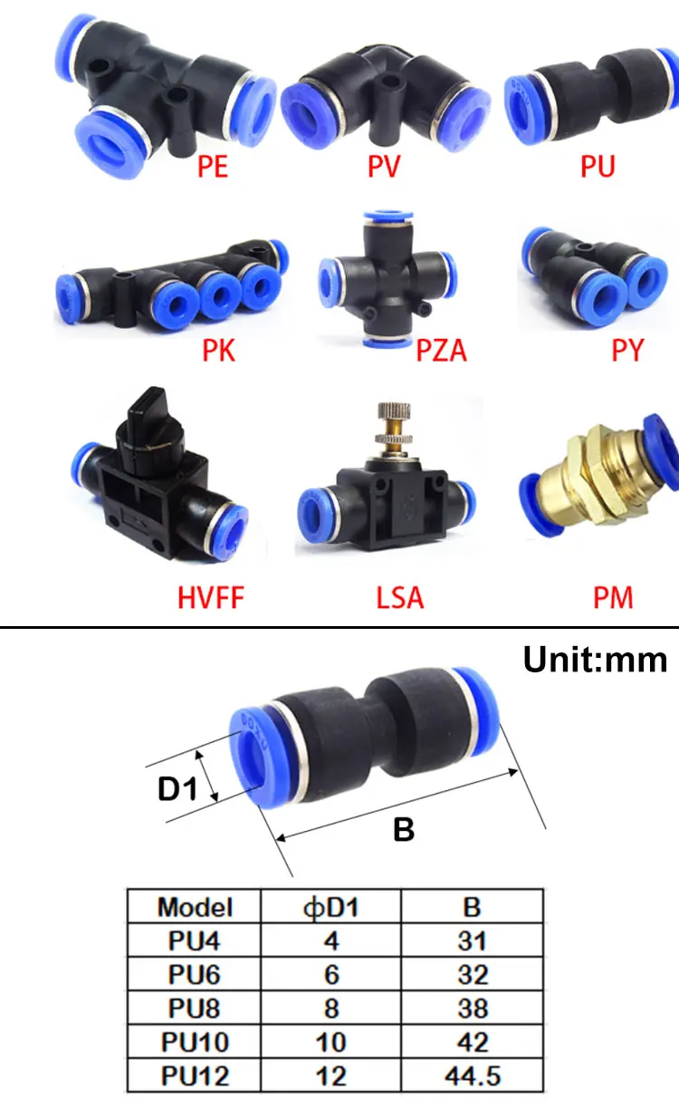 Applicable pipe: PU/PA/PE/PVC