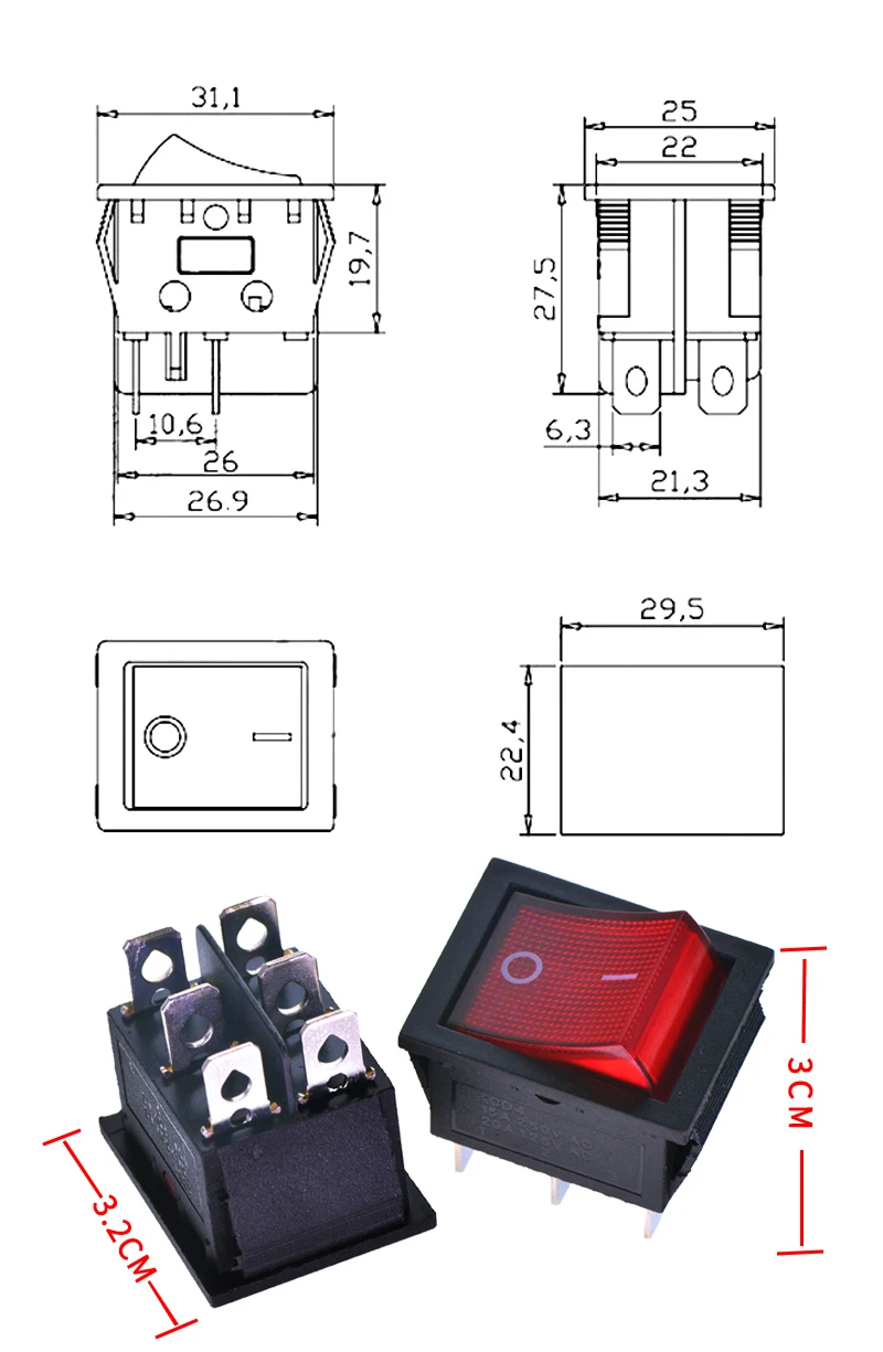 Переключатель Stlxy KCD4 пластиковый красный 16/30А