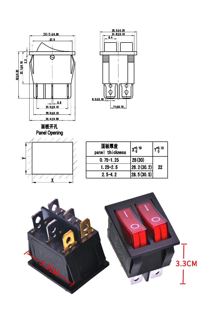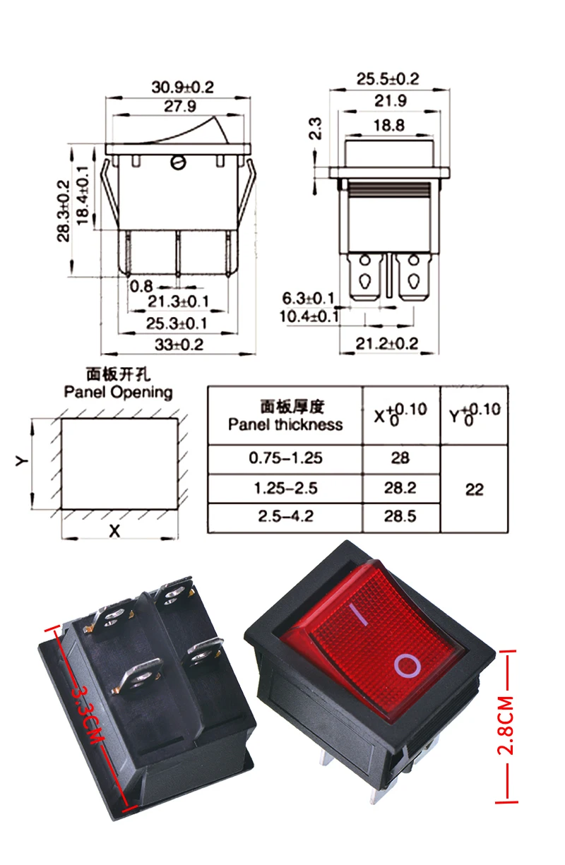 30A переключатель t8555 4-футовый 2-редукторный красный светильник