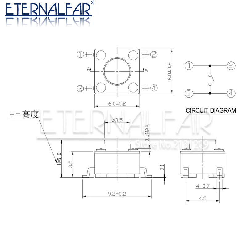 - Номер модели:6*6*H-DIP-SMD