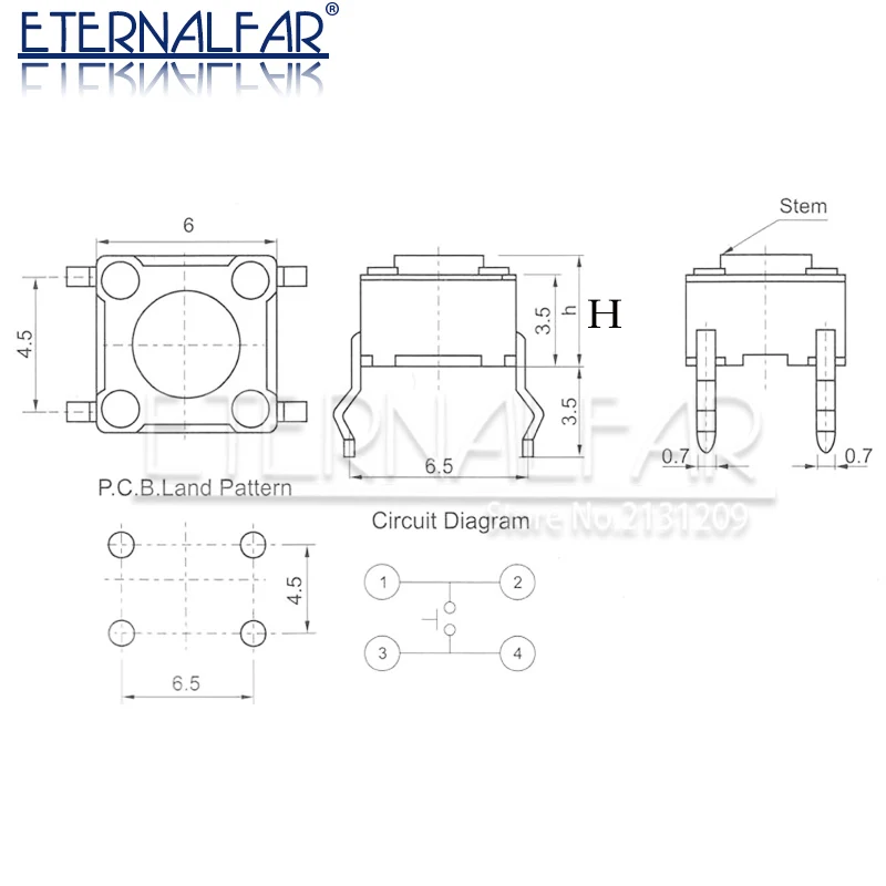 - Model Number:6*6*H-SMD