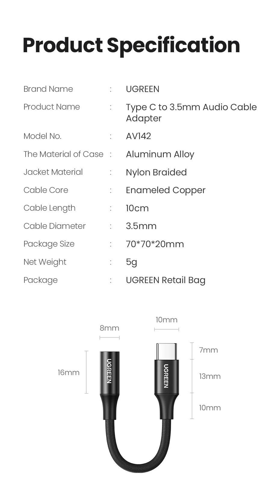Ugreen Type c to 3.5mm Headphone jack 3.5 AUX USB C Cable For Huawei P30 pro...