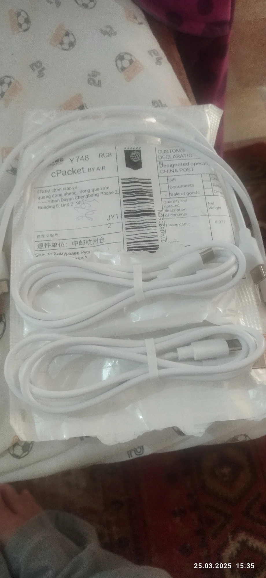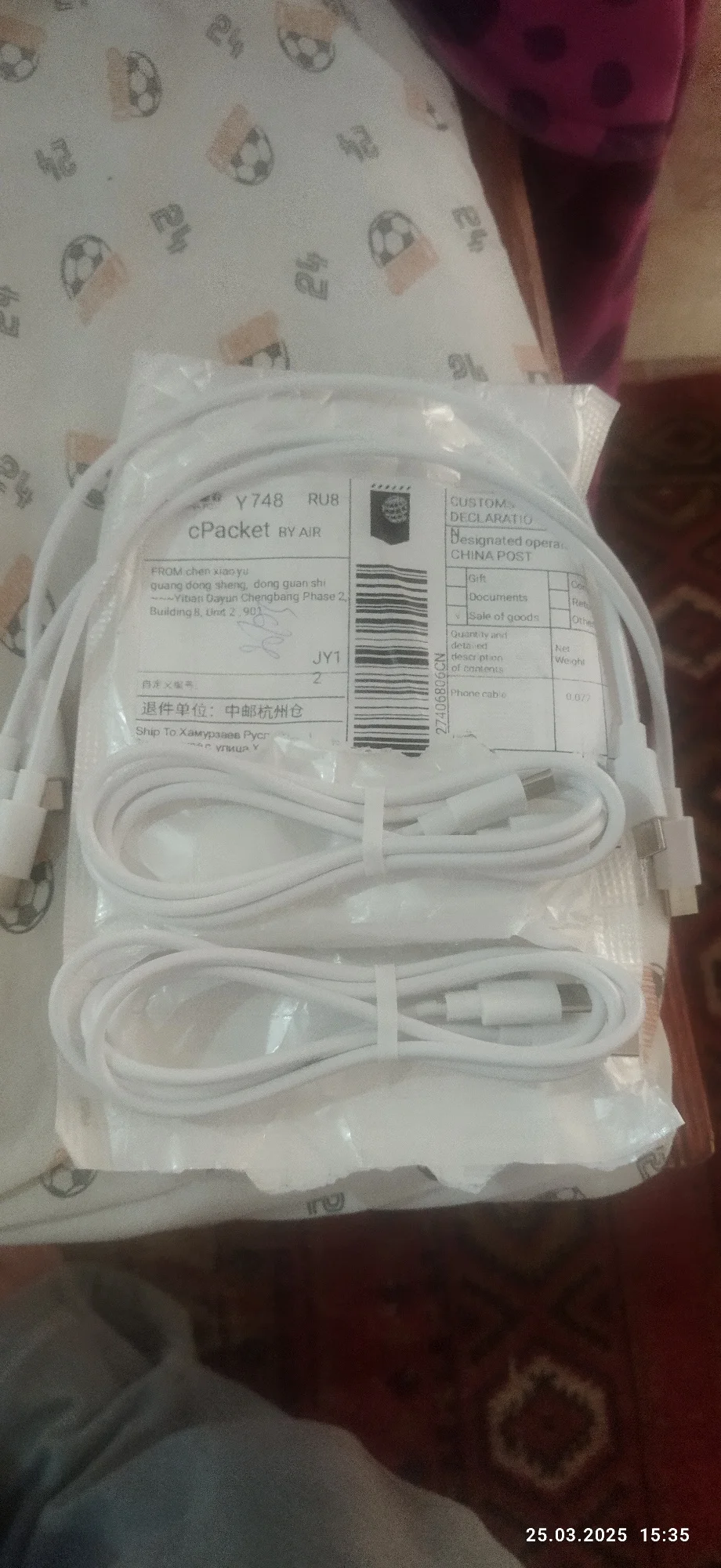 Получил посылку с Китая кабели для зарядки мяхкие пока не пользовался спасибо продавцу.