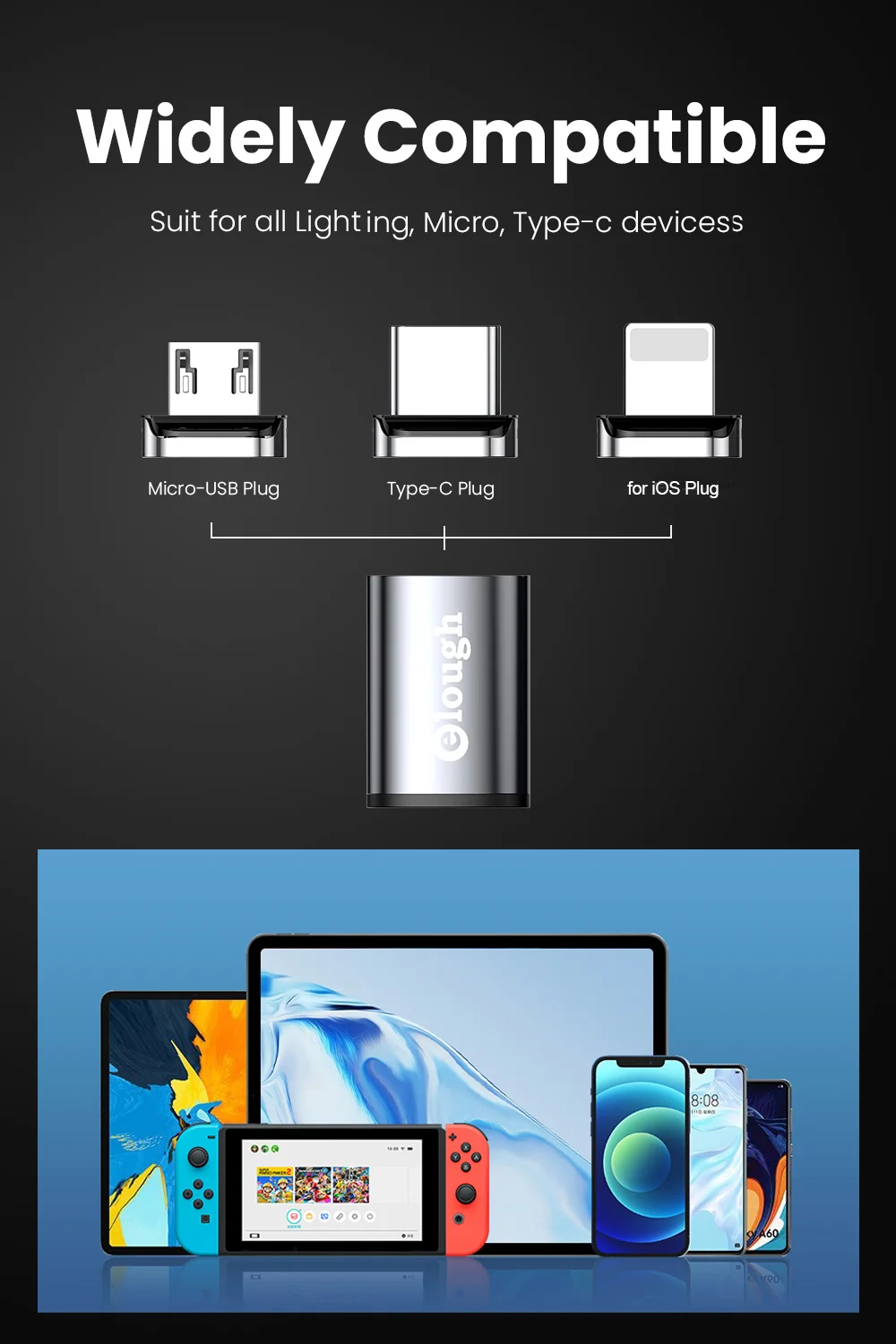 Elough Magnetic OTG Adapter For iPhone 13 Xiaomi Macbook USB Type C Micro To...