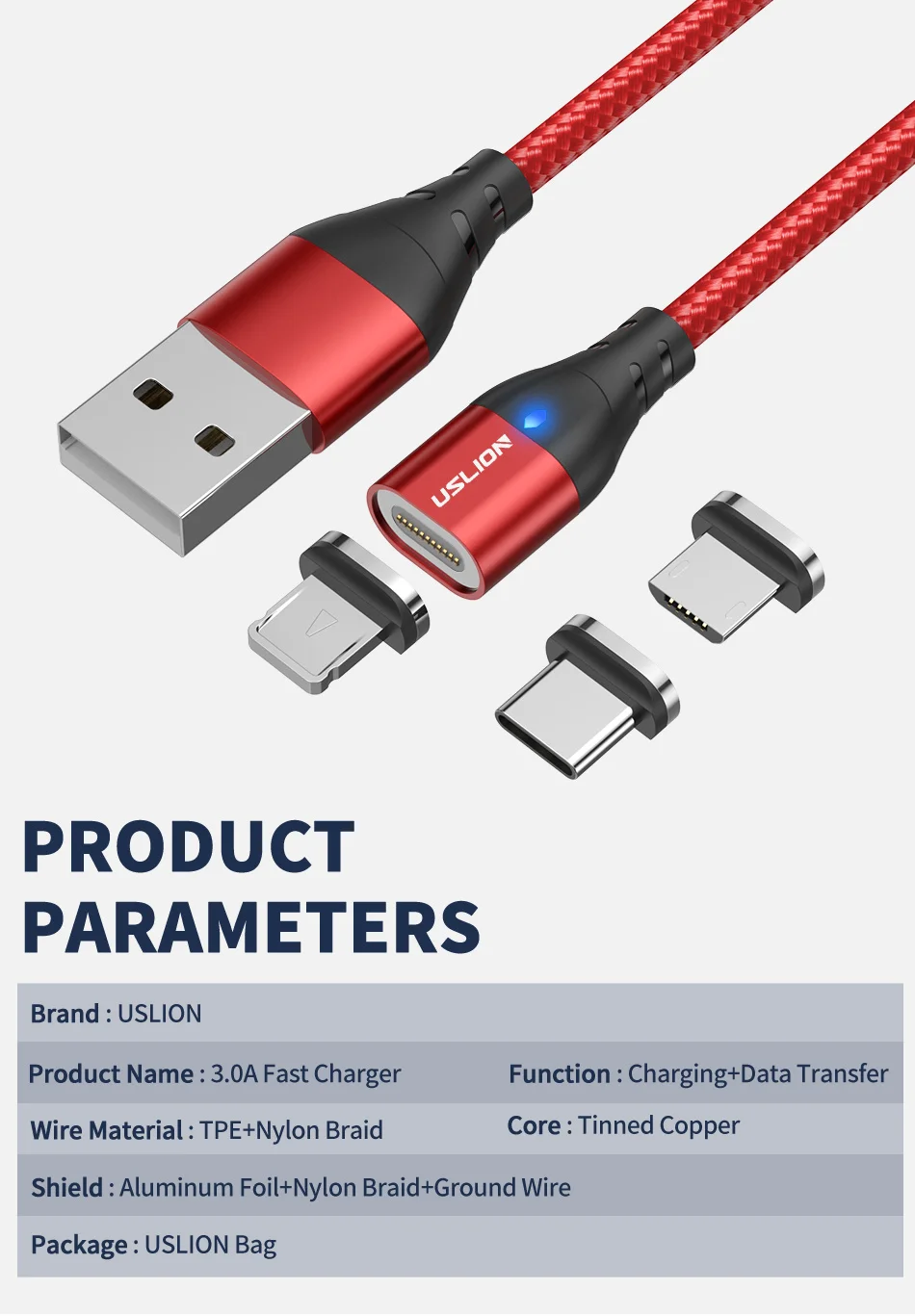 - Feature:3A Fast Charging Magnetic USB Cable