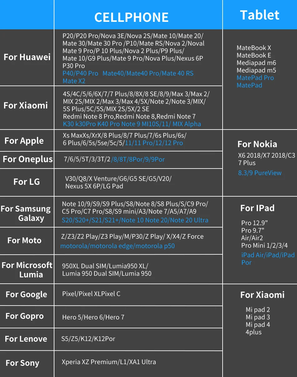 - Compatible Model 4:For Huawei Mate 20 P20 P30 Pro P10 Lite P Smart 2019
