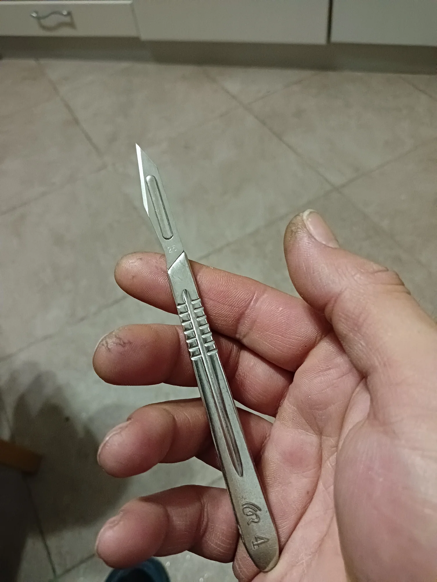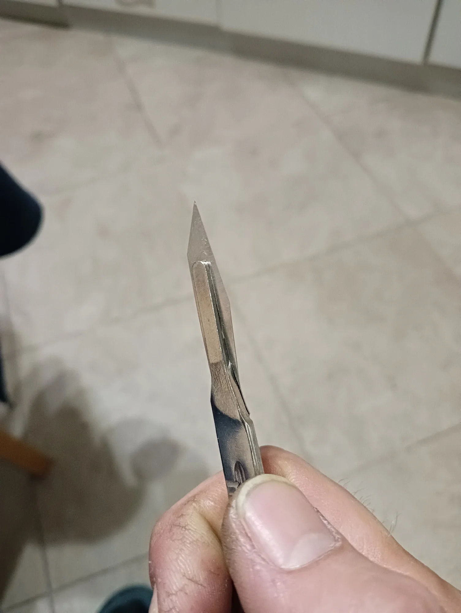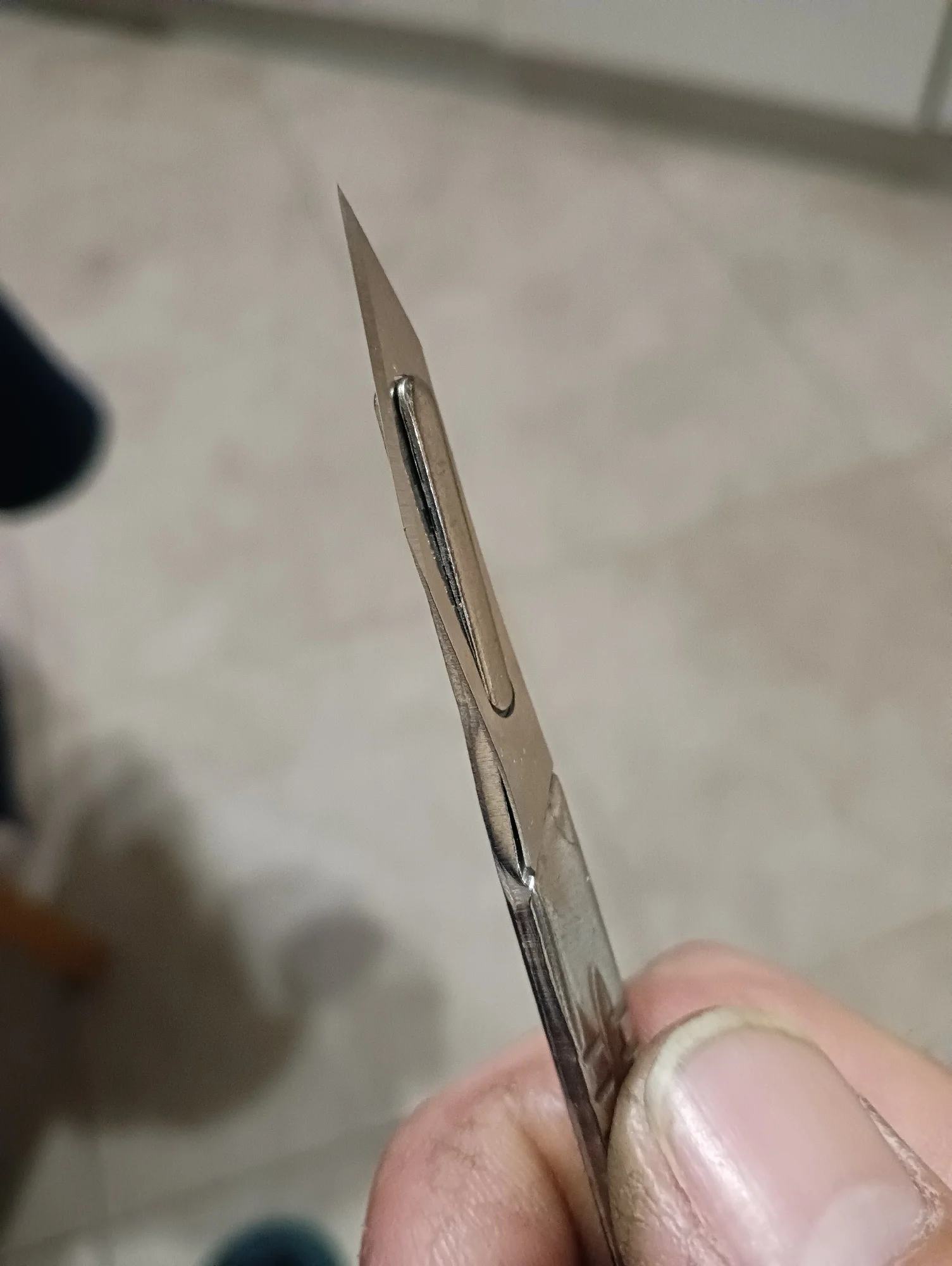 не думал что лезвия таким образом вставляются. но давно хотел что то подобное опробовать вместо лезвий для бумаги с пластиковым зажимом. Сразу минус в глубине проникновения скальпеля понятен стал, и покажет в работе надёжность фиксации лезвия на держателе. Плюсом большим для меня что всё металл. Лезвие заточенно визуально не убедительно. НО РЕЖЕЖЕТ БУМАГУ НА ВЕСУ ИЗУМИТЕЛЬНО!!!Алексей К. 23 апреля 2025