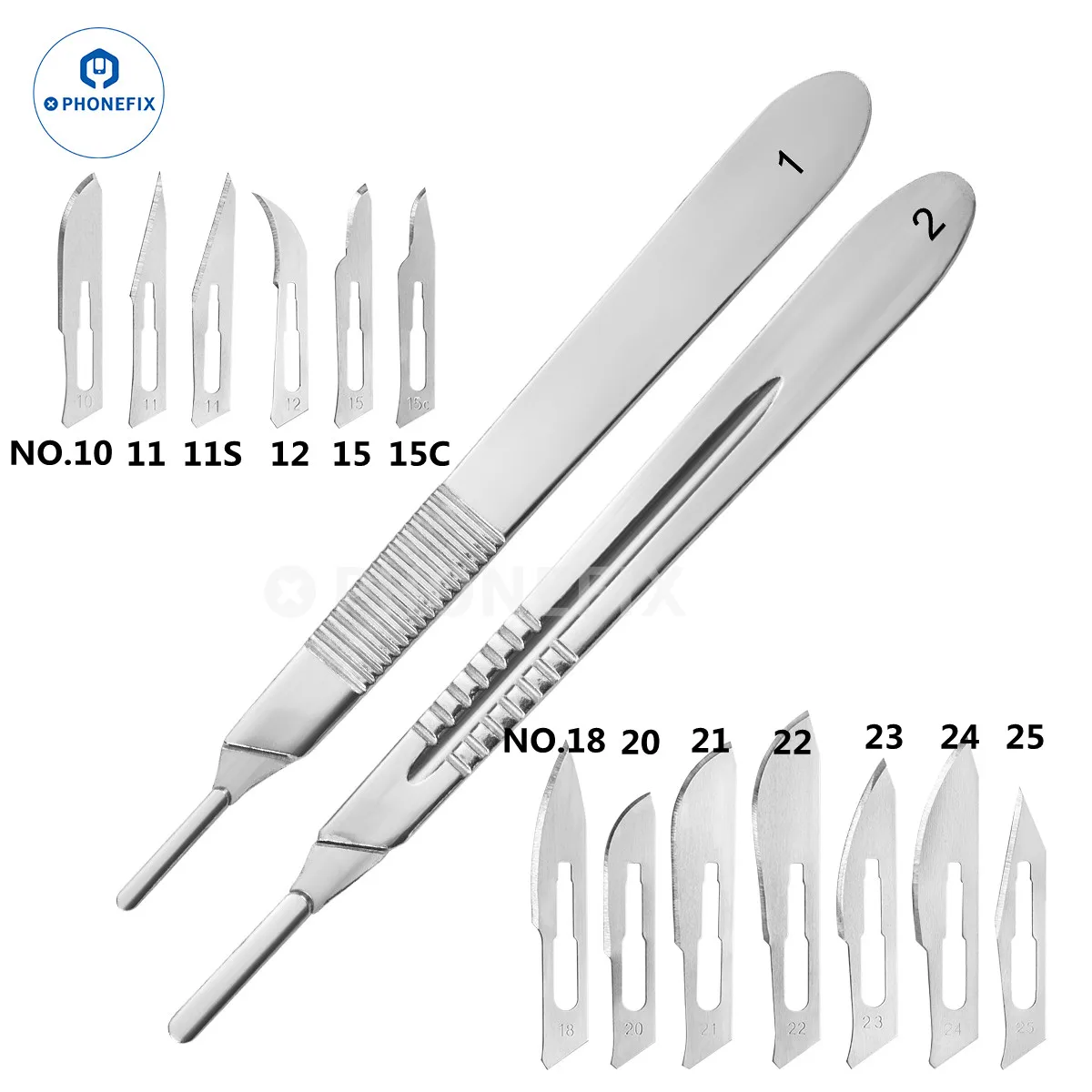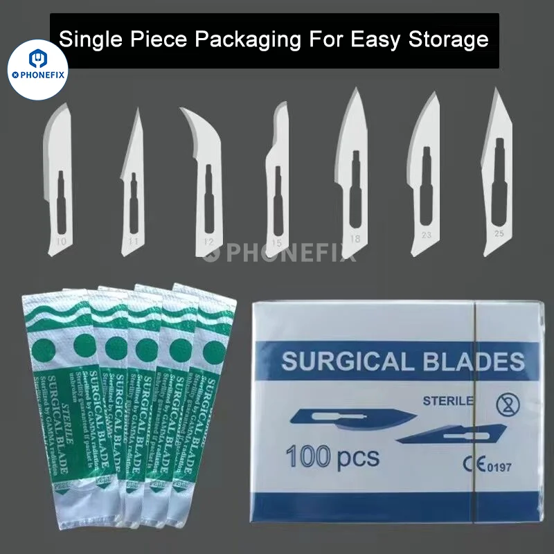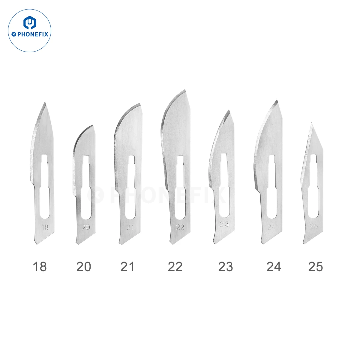 10# 11# 15# 18# 23# 25# Carbon Steel Surgical Blades Stainless Steel Utility Sterile Scalpel Knife Handle Blades Phone PCB Repair