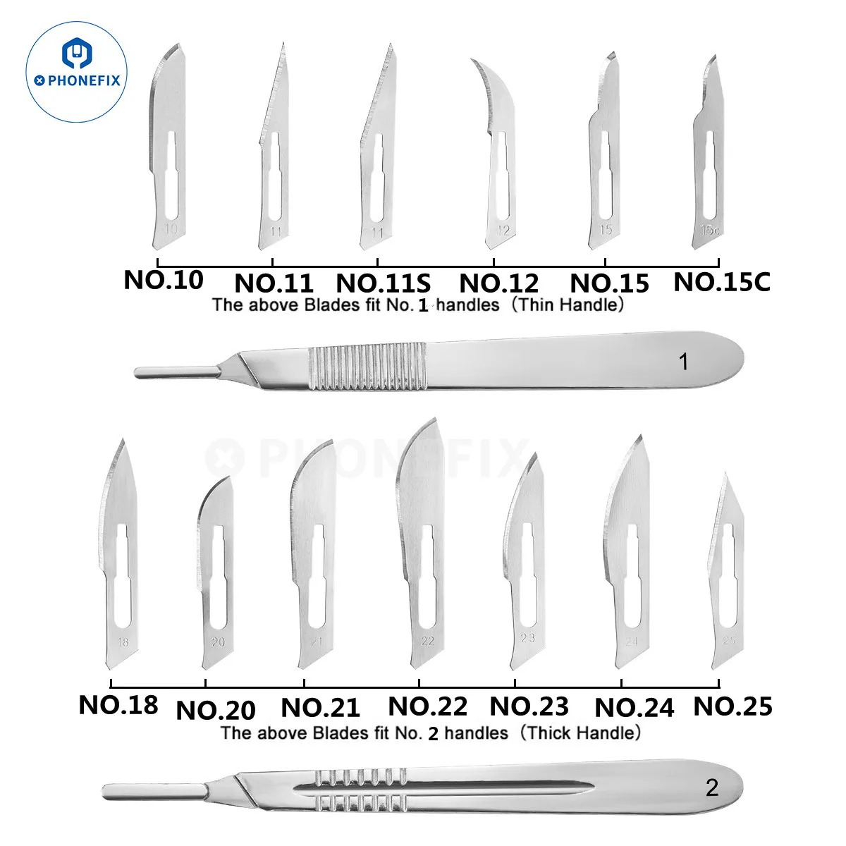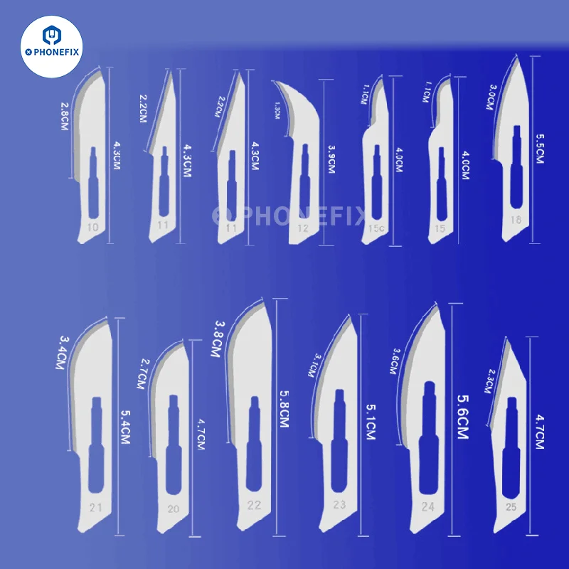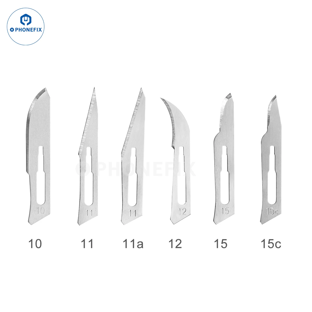 10pcs/Set Carbon Steel Scalpel Knife Blades Dental Surgical Blade. Disposable Sterile Scalpel Knife Blades can be used for surgery, dentistry, jewelry, mobile phone PCB DIY Repair Hand Tool. Sterile Surgical Scalpel Blades Stainless steel Graver for Phone Motherboard Glue/BGA CHIP Removing.