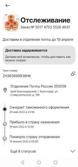 Товар получил на почте, только вот перейти он должен был до 19.04.22! За это время можно было купить его в своём городе! Ооочень долгая доставка...