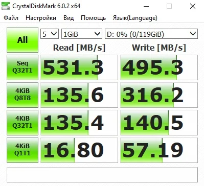 Скорость: до 550 МБ/с.