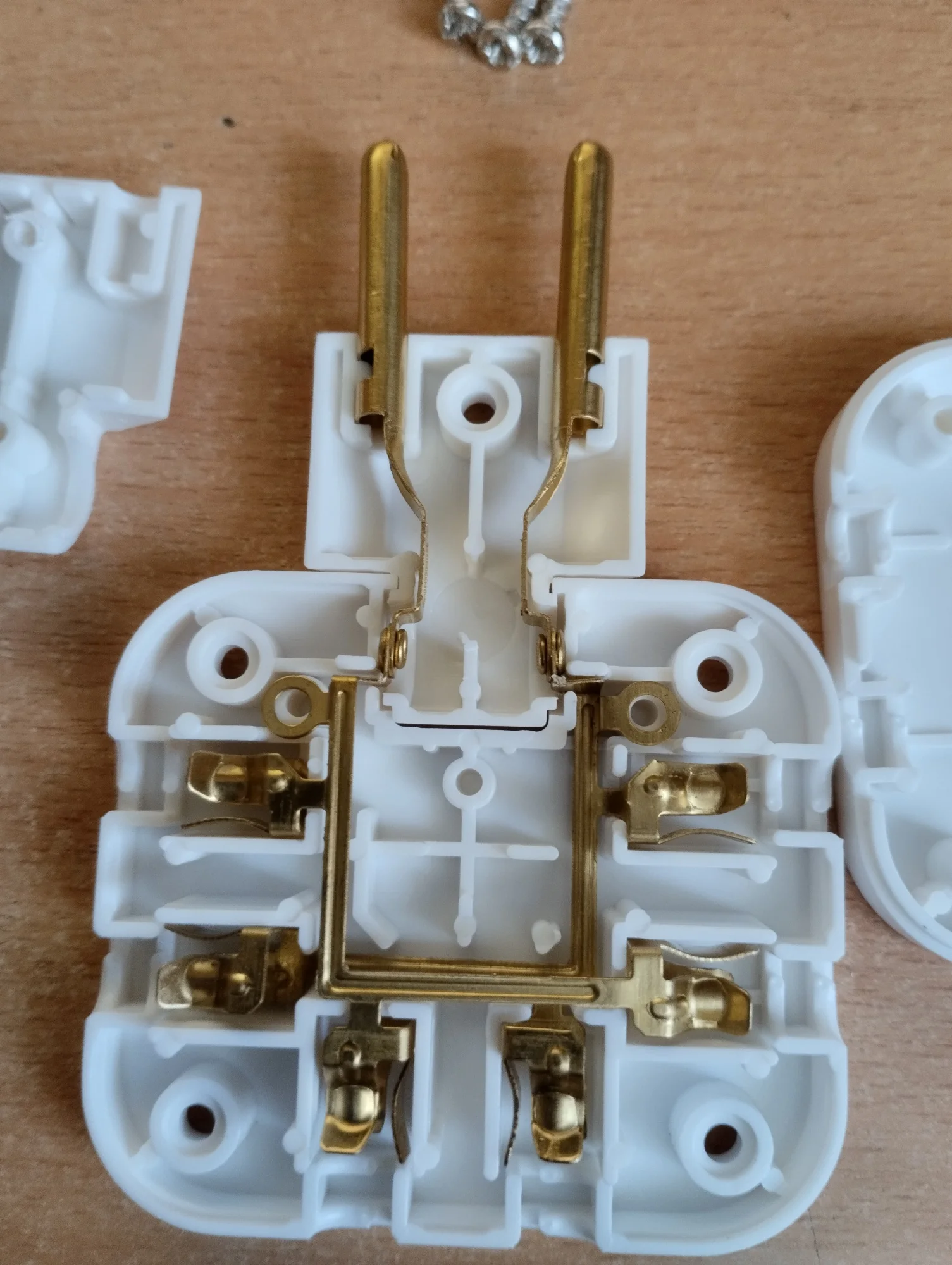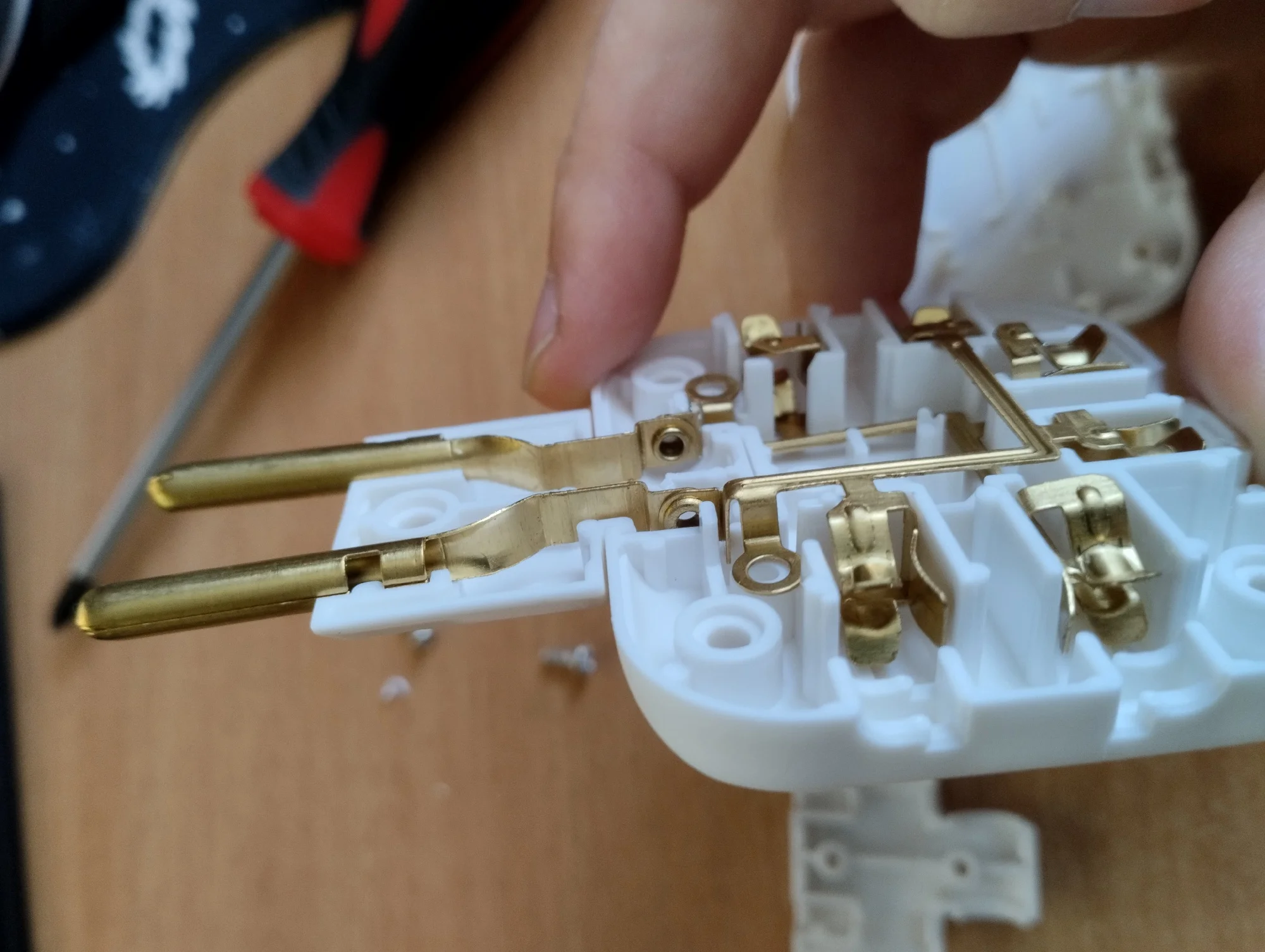 Контакты латунные, пустотелые, с относительно тонкой стенкой. На 16 Ампер не очень тянет, максимум на 10.Ivan I. 29 сентября 2024