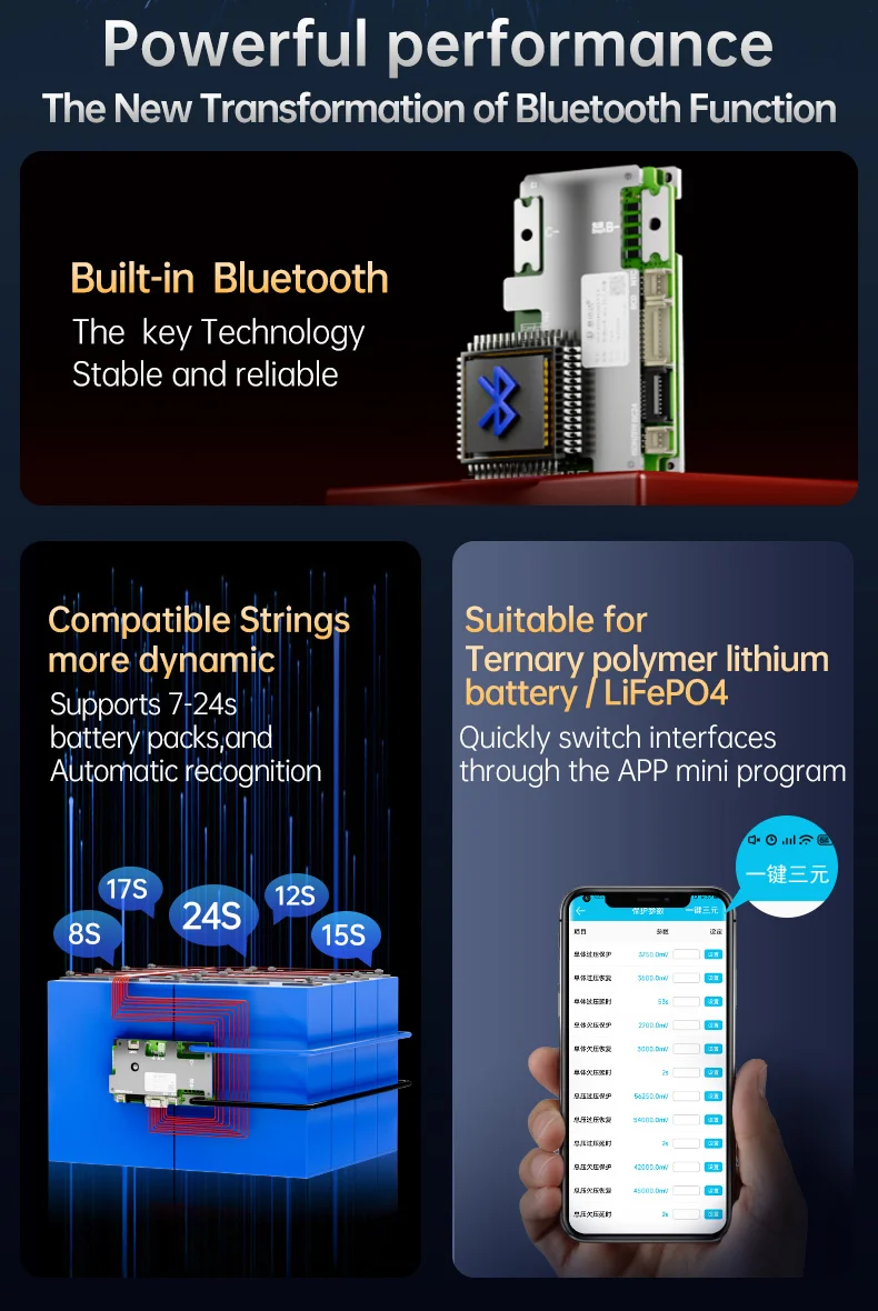 JBD Smart LiFePO4 BMS 6S 8S 12S 13S 14S 16S 20S 21S With Bluilt-in Bluetooth...