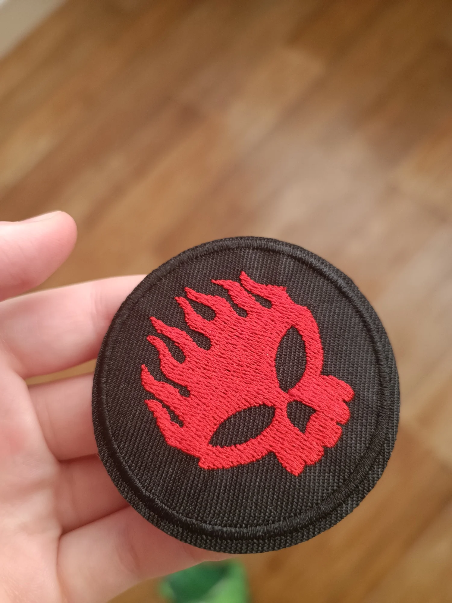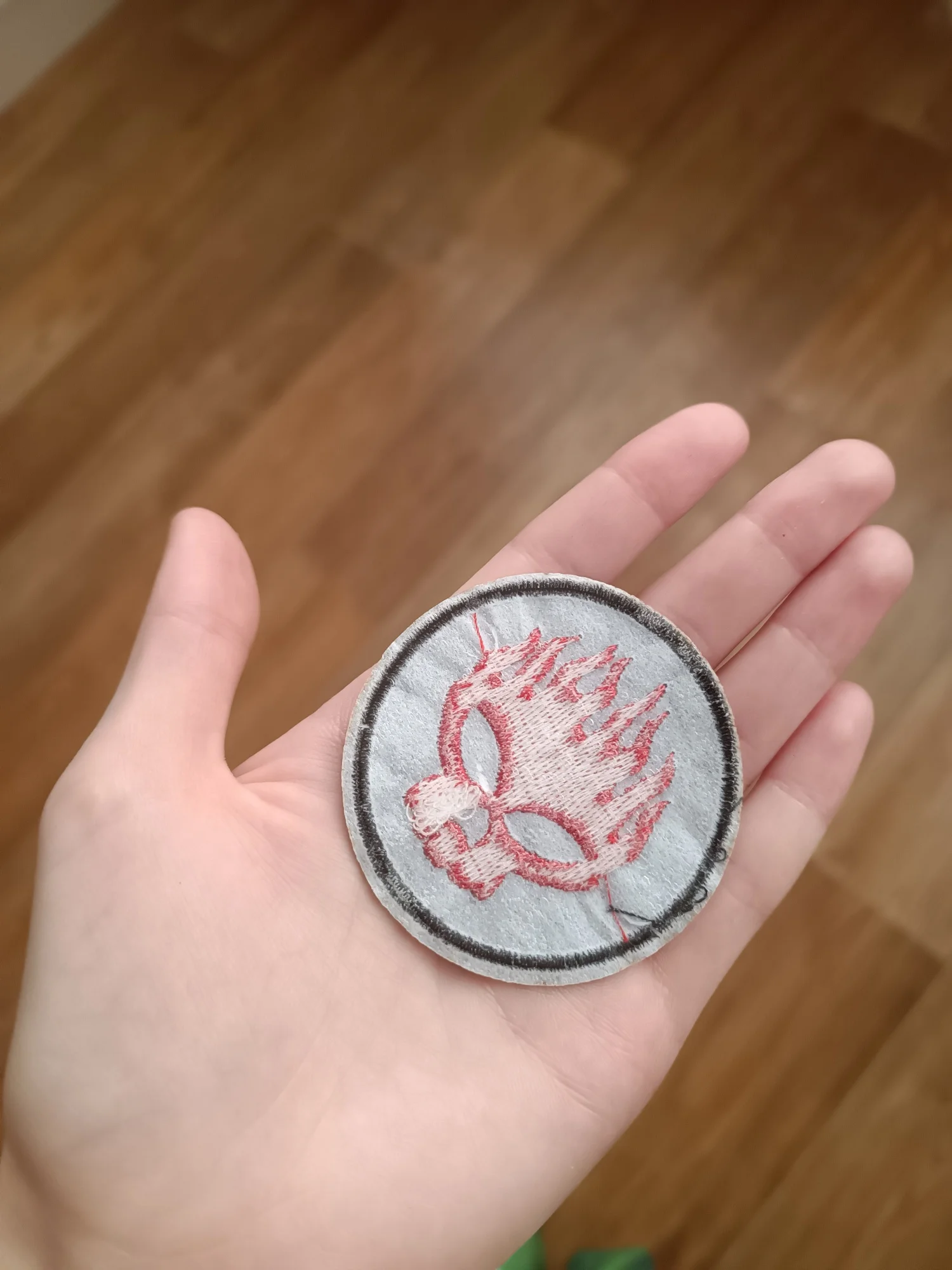 Люблю группу The Offspring. Нашивка крутая. Только приклеивать я её не собираюсь, чтобы в случае чего можно было повторно использовать. Поэтому я её просто пришью. Но пока думаю куда, на шопер или портфель.