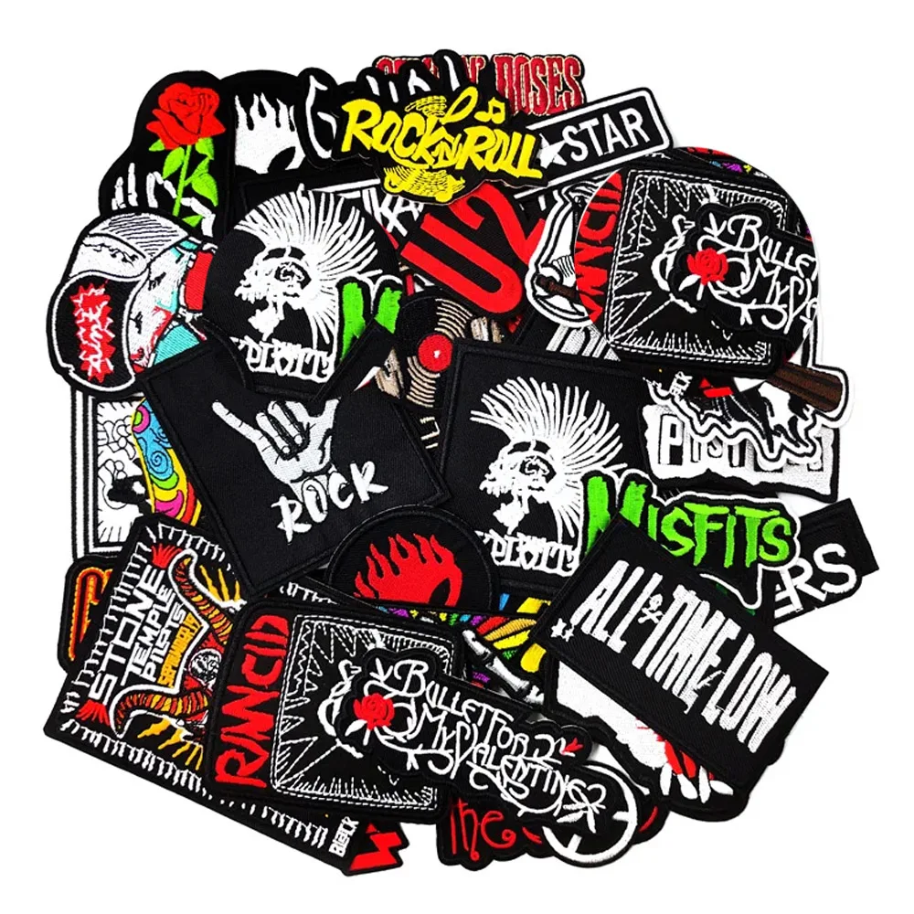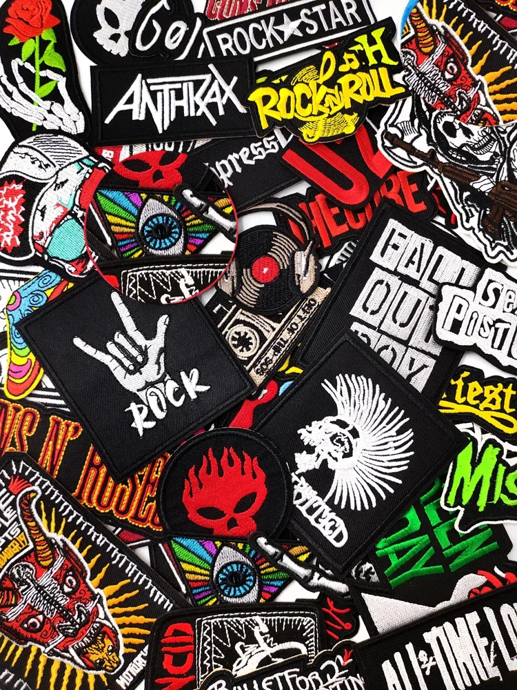 Skull Punk Rock Bands Star Iron On Patches Apparel Sewing Fabric Handmade...