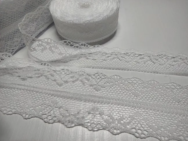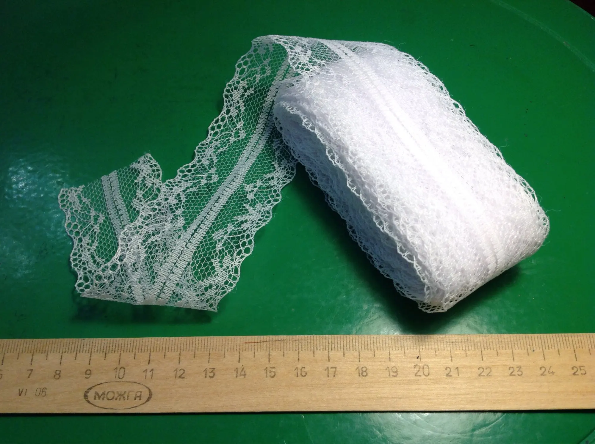 Доставка а Москву быстрая - около 3х недель. Упаковка качественная. Кружево упругое, шелковистое, кипельно-белого цвета. Длина соответствует заявленной. У этого производителя заказывала больше 10 раз - всем советую к покупке у этого продавца. Очень добросовестный продавец