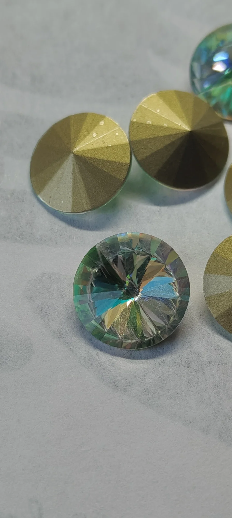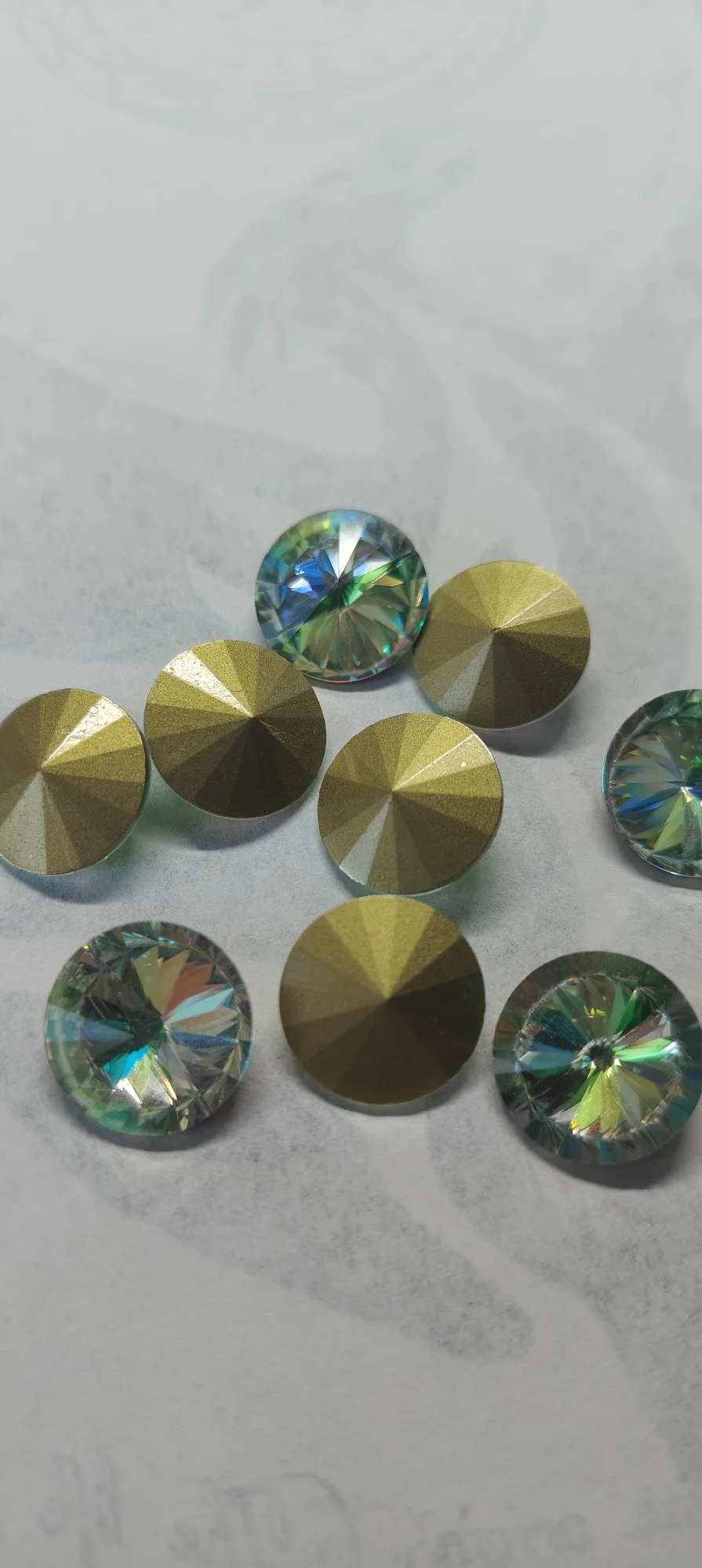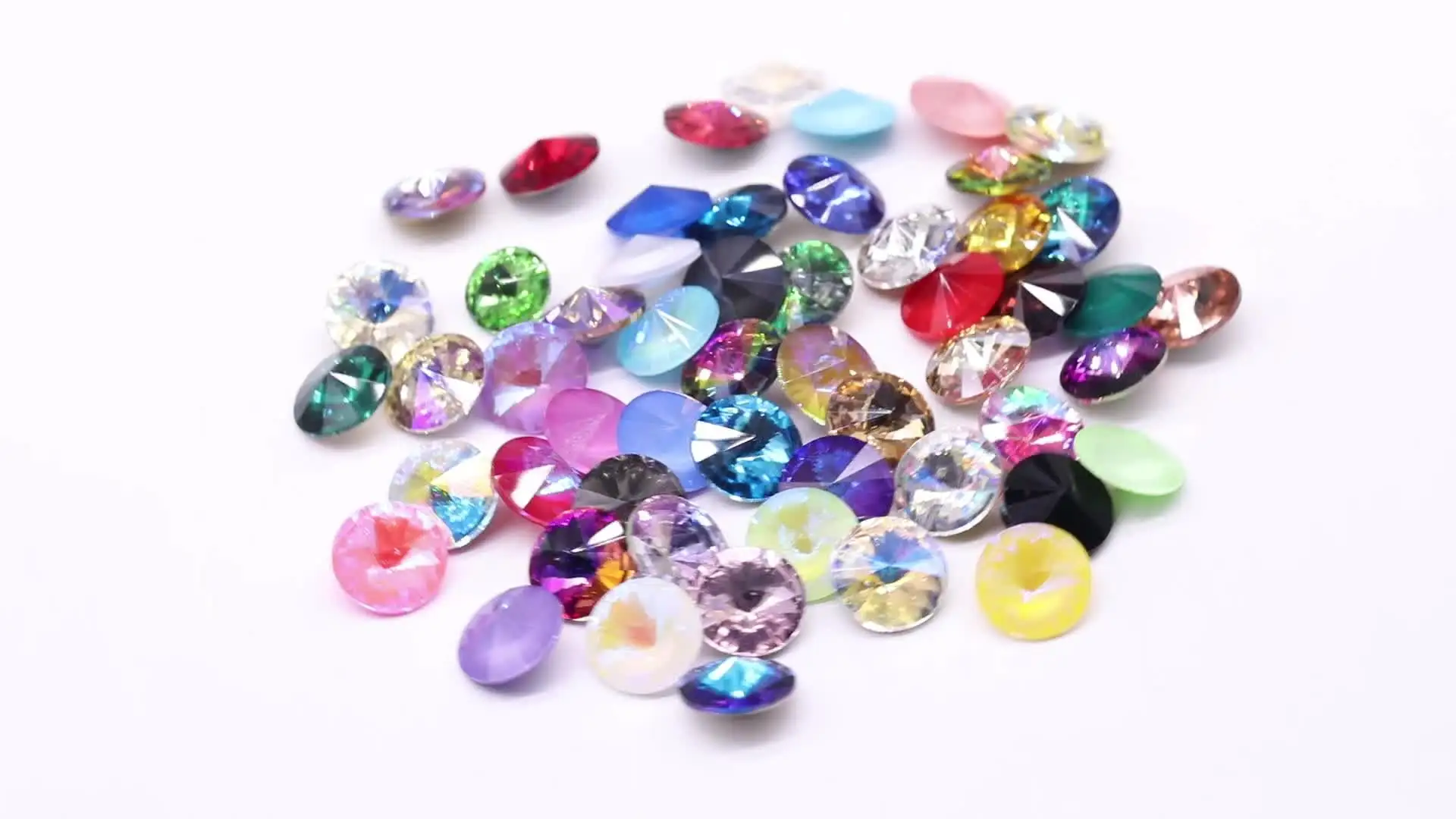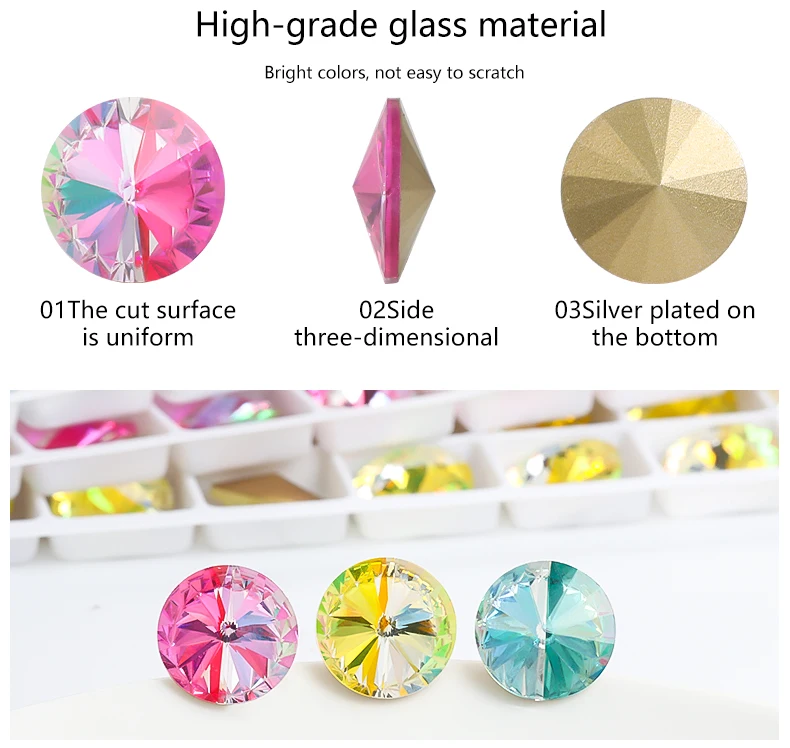 6/8/10/12/14MM Rivoli Rhinestone Round Pointed Diamond Stones Colorful Beads...