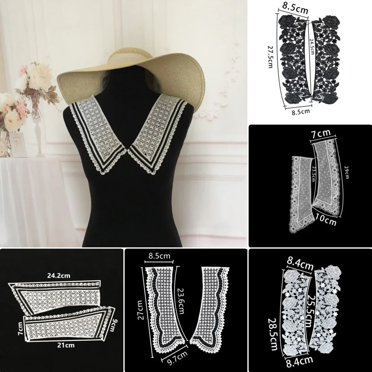 Wholesale sales of 1-10 pieces Black and white embroidery hollowed out Shredded...