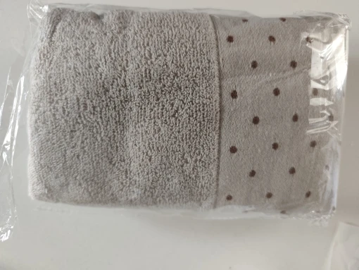 very soft and fluffy cotton towel , colour is brown, it is not very big, and not the smallest. I think it is the best size to wie out your face and hands :-)