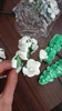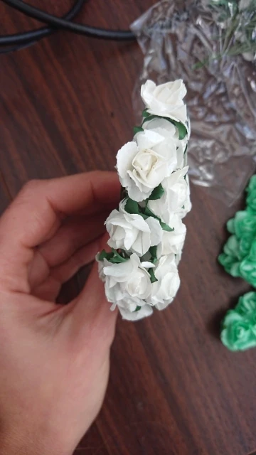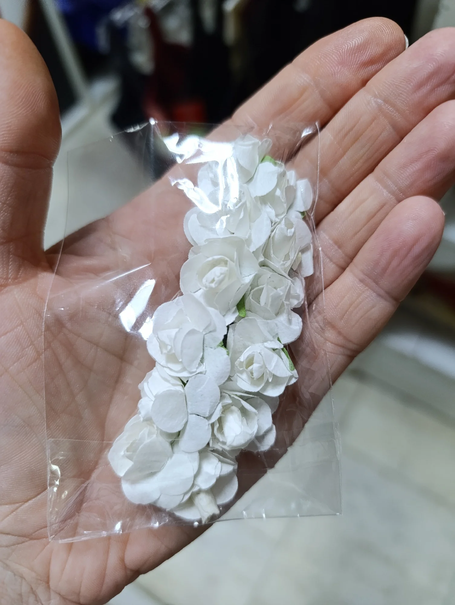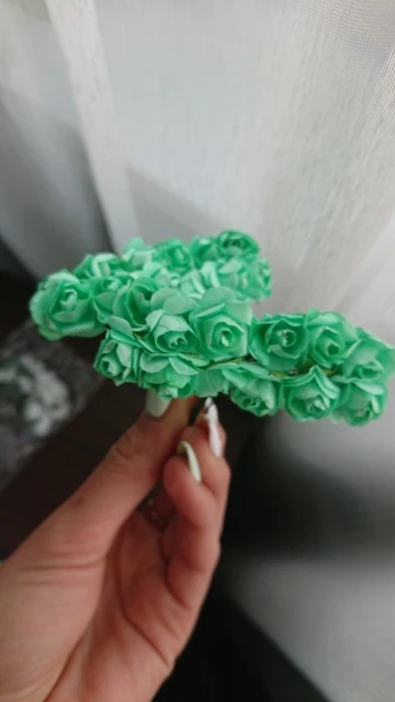 Пришли в пакете, мятые сильно... бумага по цвету не белая, а сероватая, местами мелкие пятна какие-то на лепестках. А другие цветы, якоюы мятного цвета , вообще оказались зелеными, абсолютное несоответствие фоторрафиям и названию. Они мне не подходят