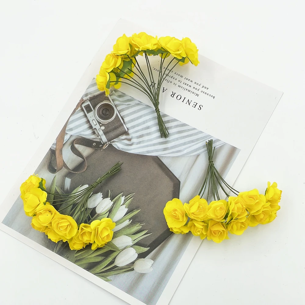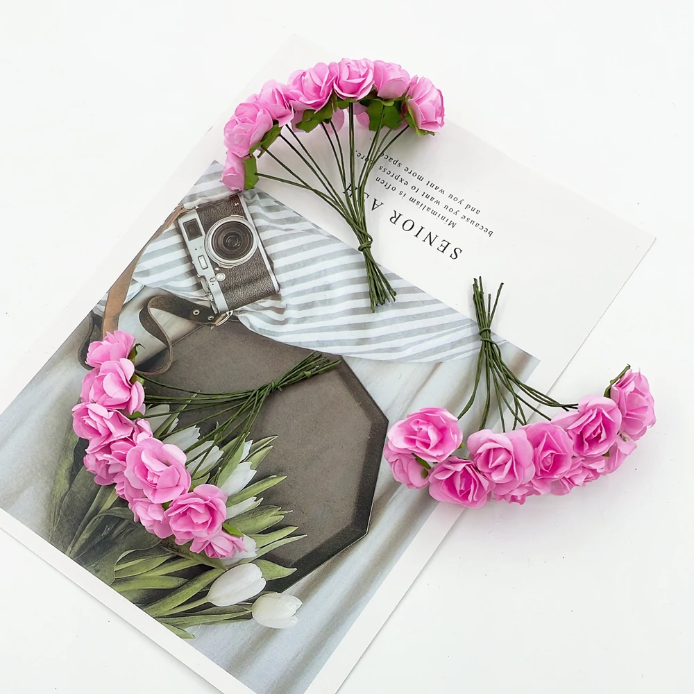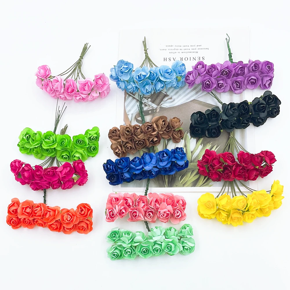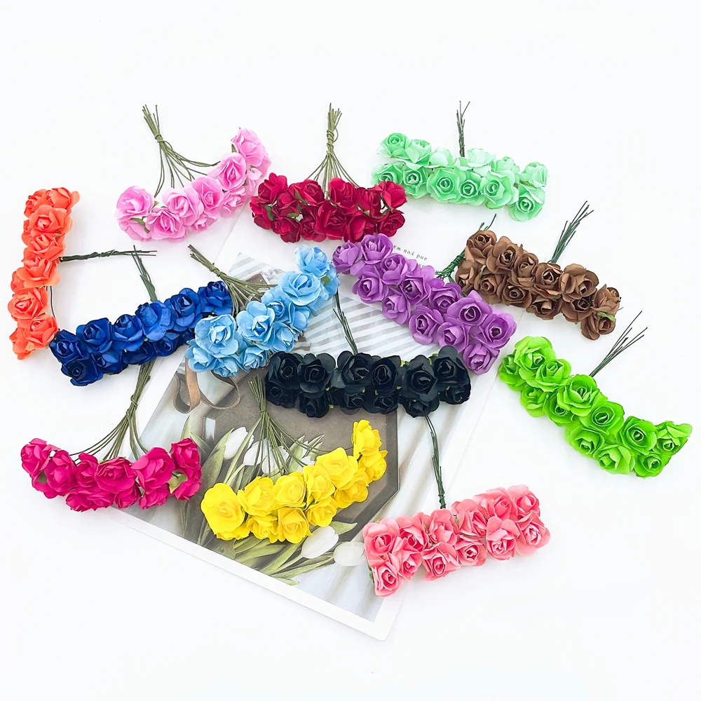 12/36/72 шт. 2 см мини бумажная Роза Букет искусственных цветов для свадебной вечеринки украшения Скрапбукинг DIY ремесла поддельные цветы