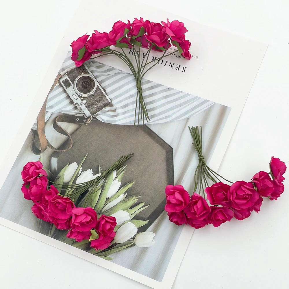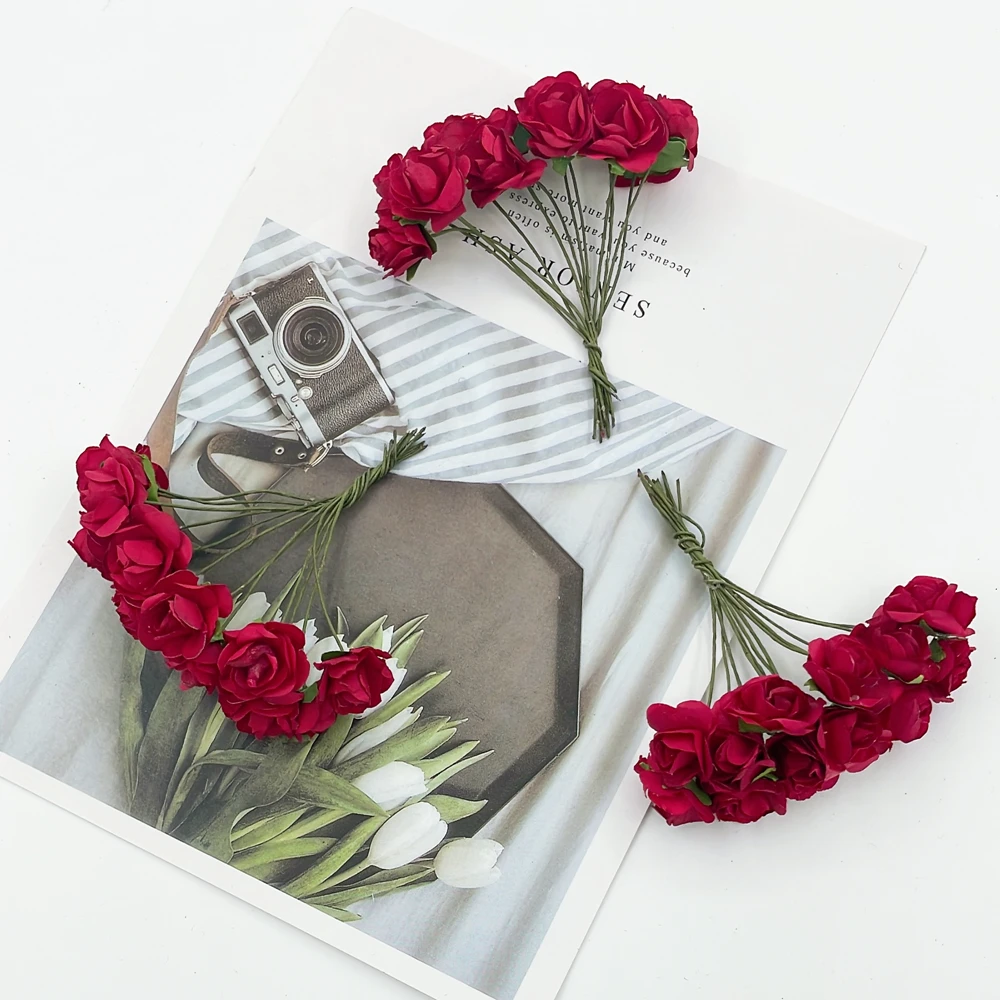 12pcs 2cm Mini Paper Rose Artificial Flowers Bouquet for Wedding Party...